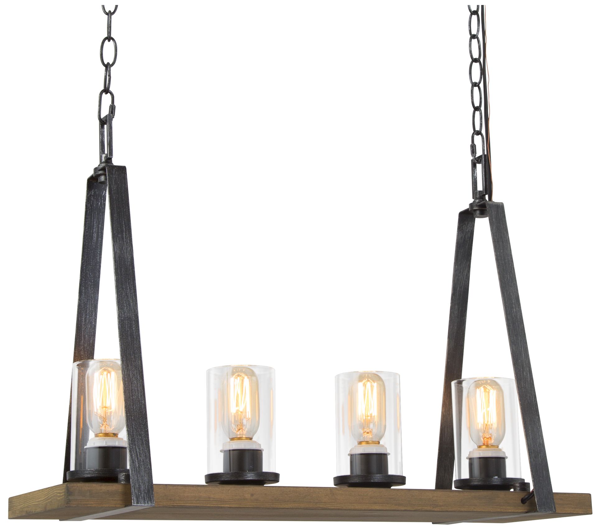 Obilla 25.6" Wide Distressed Wood 4-Light Linear Chandelier