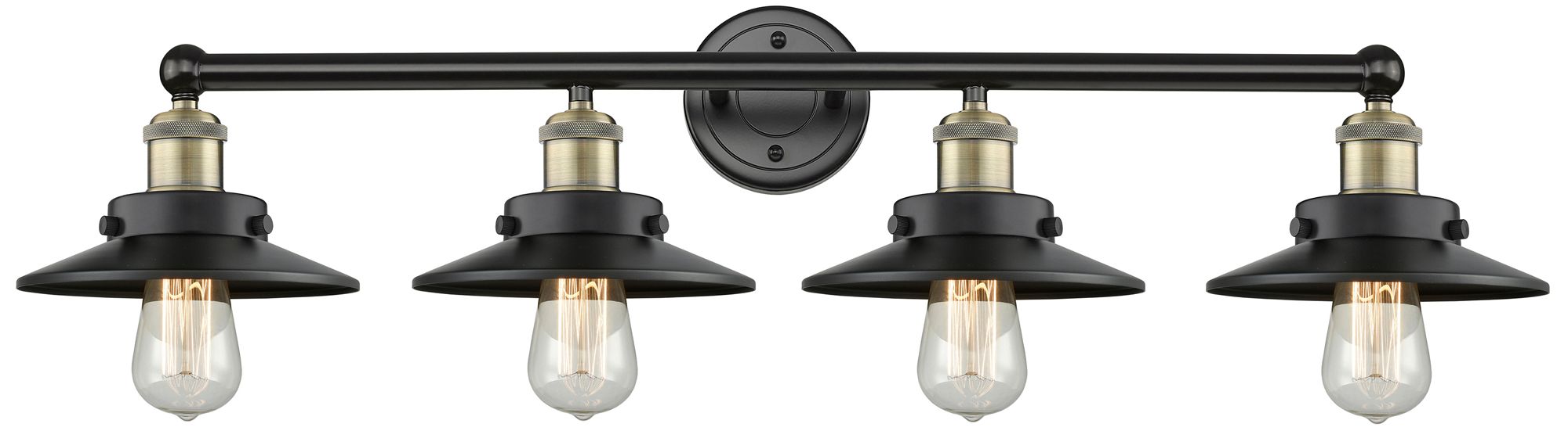 Railroad 35"W 4 Light Black Brass Bath Vanity Light w/ Matte Black Sha