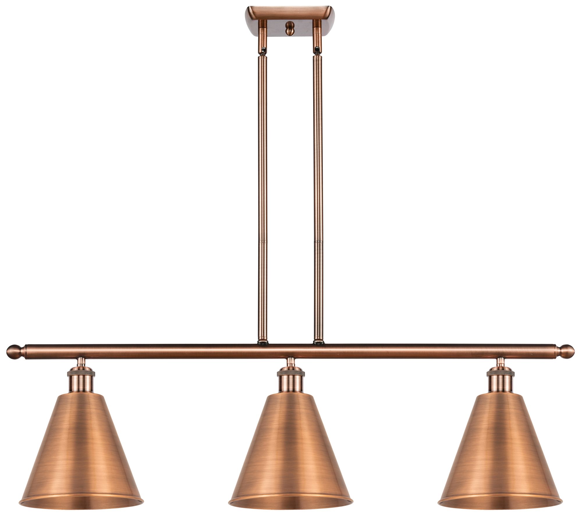 Ballston Cone 36"W 3 Light Copper Stem Hung Island Light With Copper S