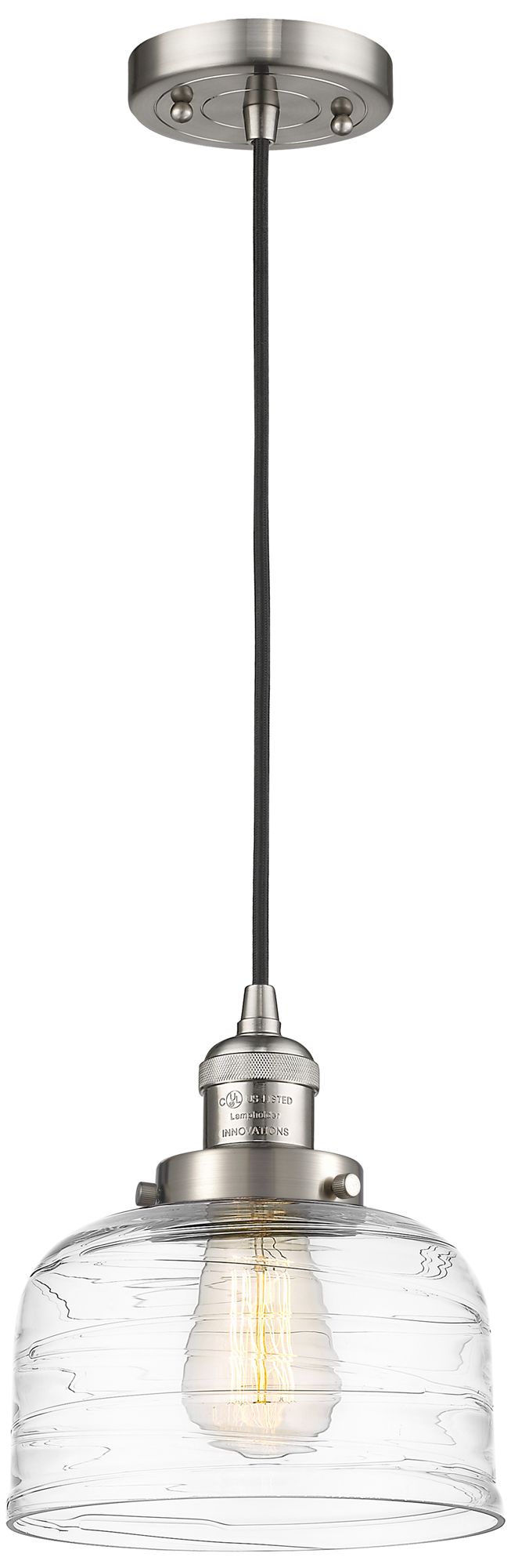 Franklin Bell 8"W Brushed Nickel Corded Mini Pendant w/ Deco Swirl Sha