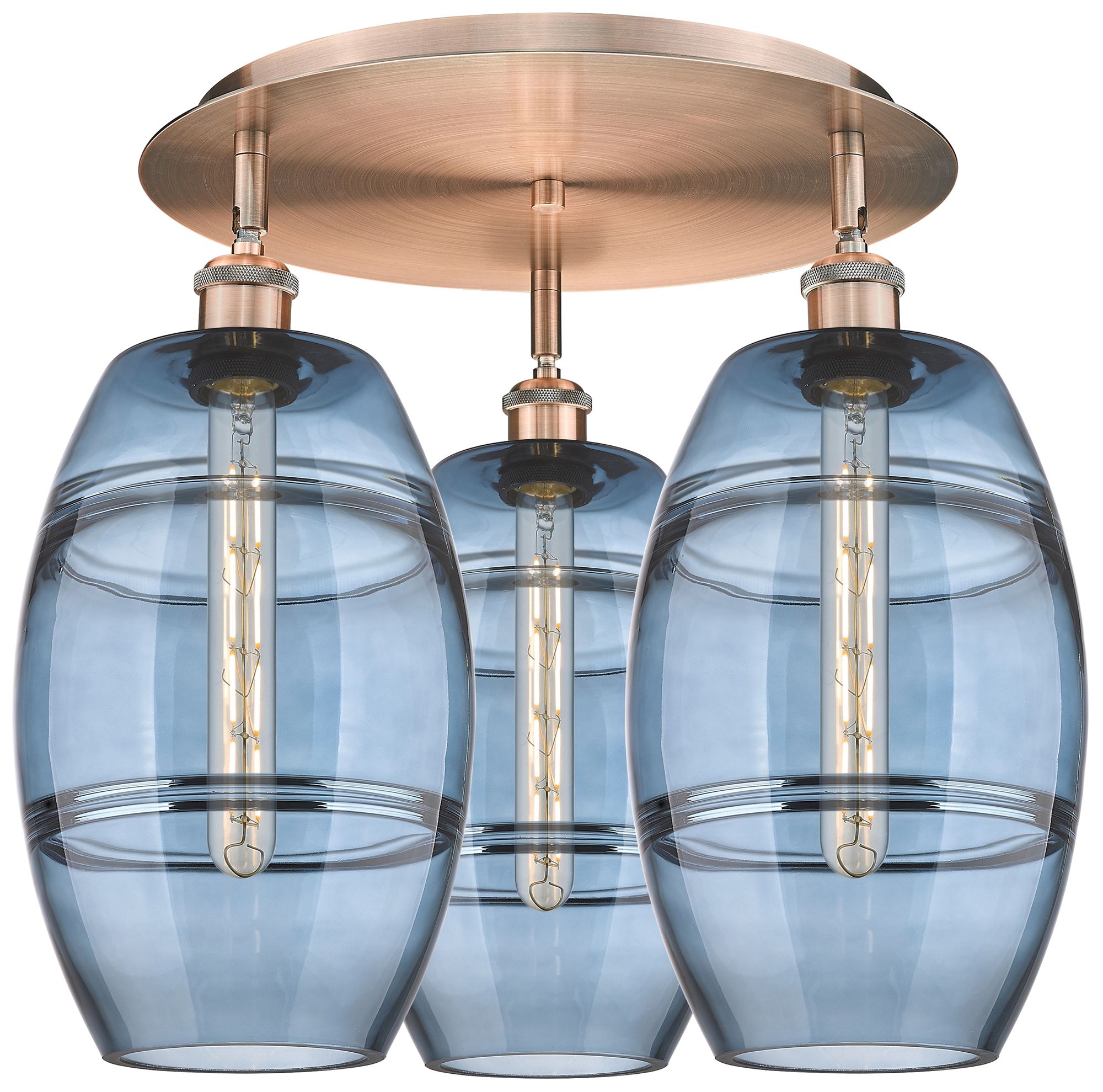Ballston Vaz 19.75"W 3-Light Antique Copper Flush Mount w/ Blue Shade