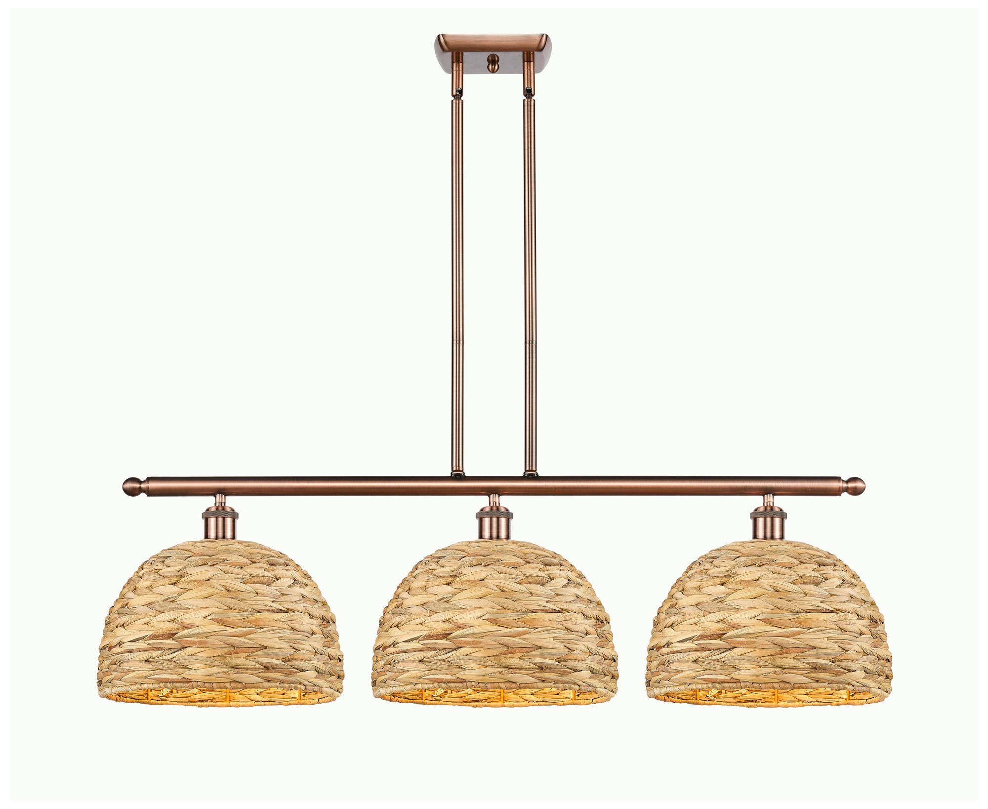 Woven Rattan 38"W 3 Light Copper Stem Hung Island Pendant w/ Natural S