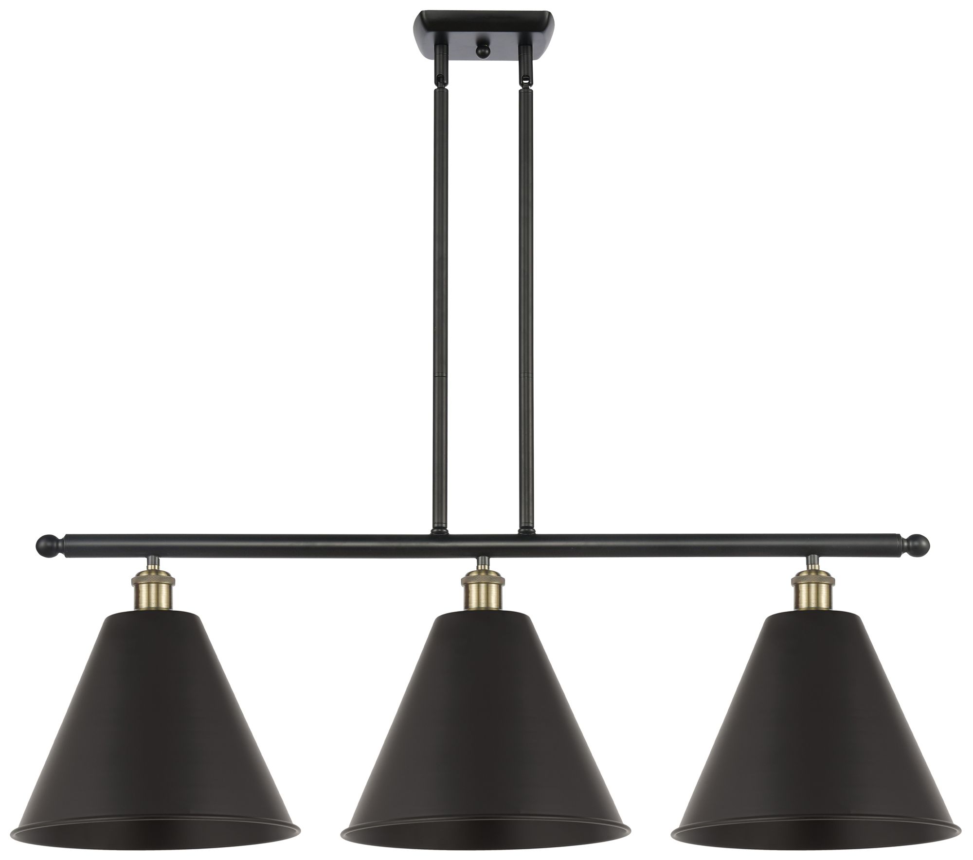 Ballston Cone 38.5"W 3 Light Black Brass Stem Island Light w/ Black Sh