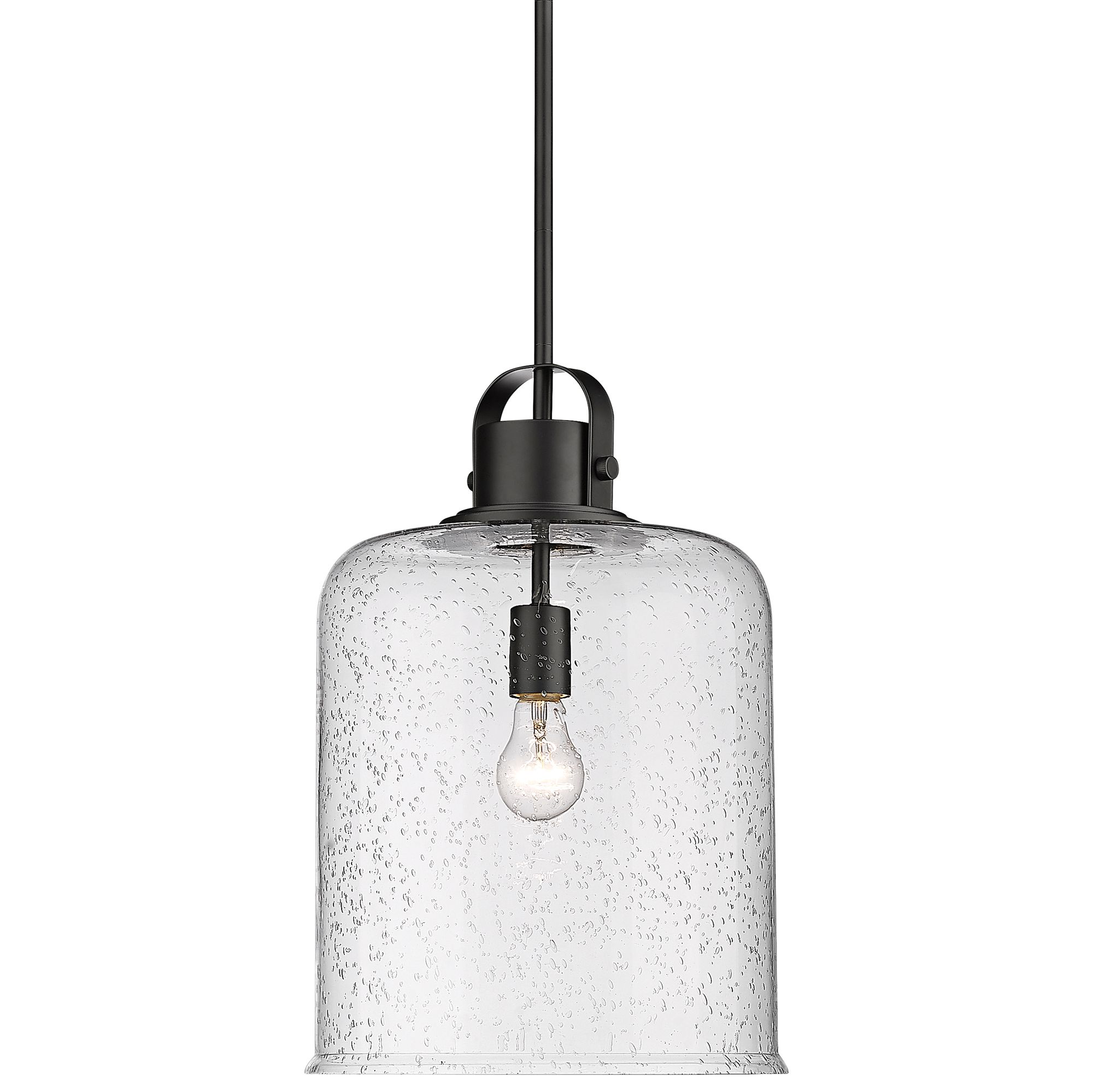 Kinsley 12" Wide Matte Black Mini Pendant with Seeded Glass