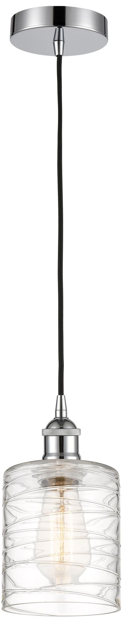 Edison Cobbleskill 5" Mini Pendant - Polished Chrome - Deco Swirl Shad