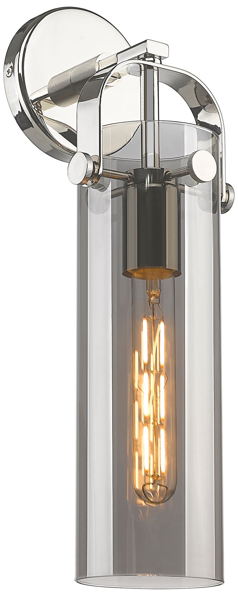 Pilaster 16.75" High Polished Nickel Sconce With Plated Smoke Glass Sh