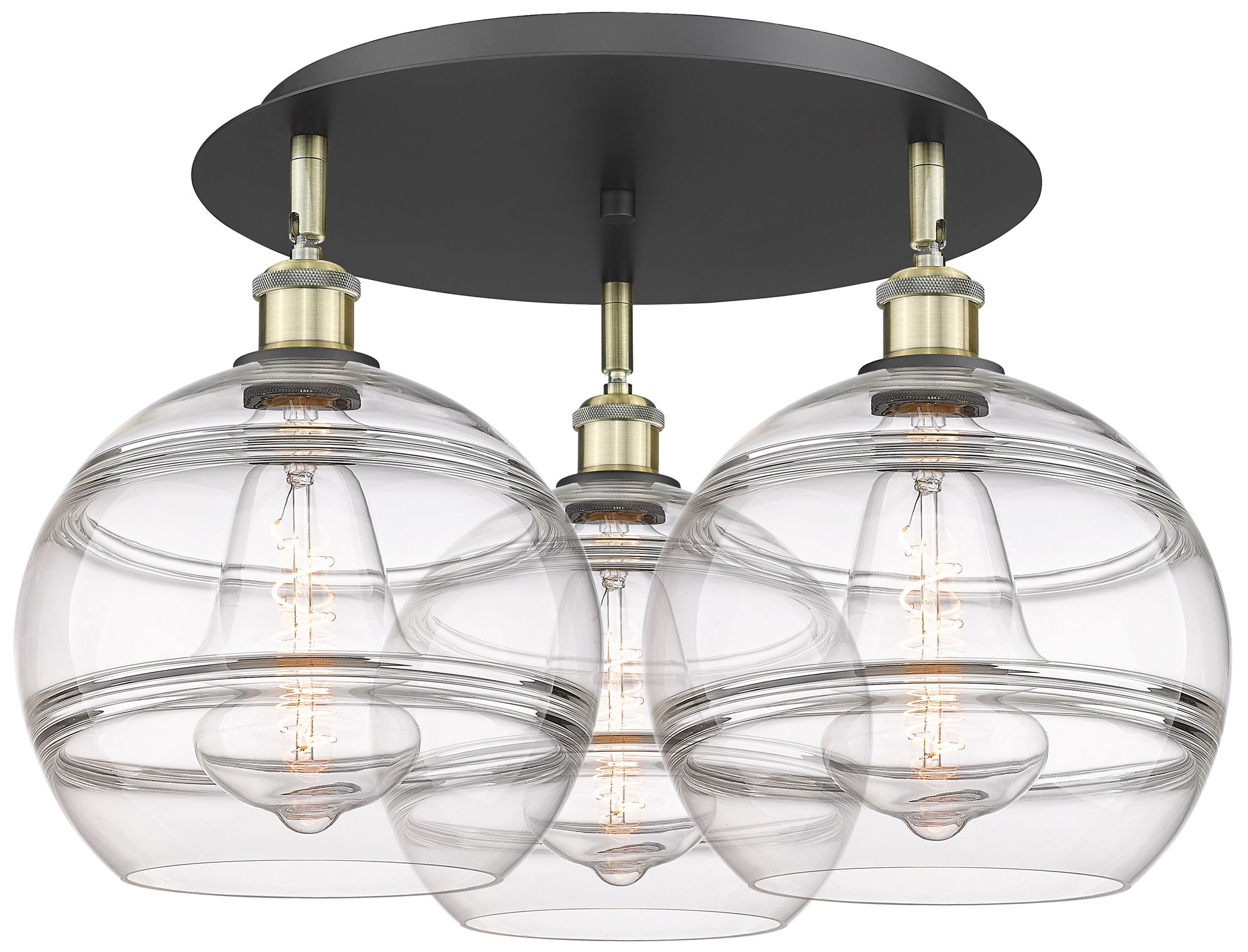 Ballston Rochester 21.75"W 3-Light Black Brass Flush Mount w/ Clear Sh
