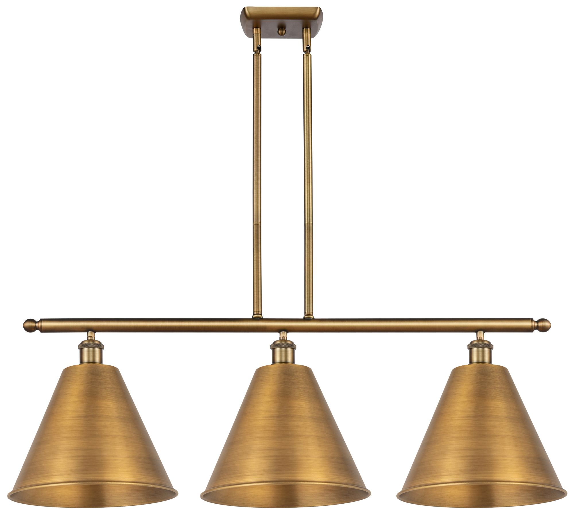 Ballston Cone 38.5"W 3 Light Brushed Brass Stem Island Light