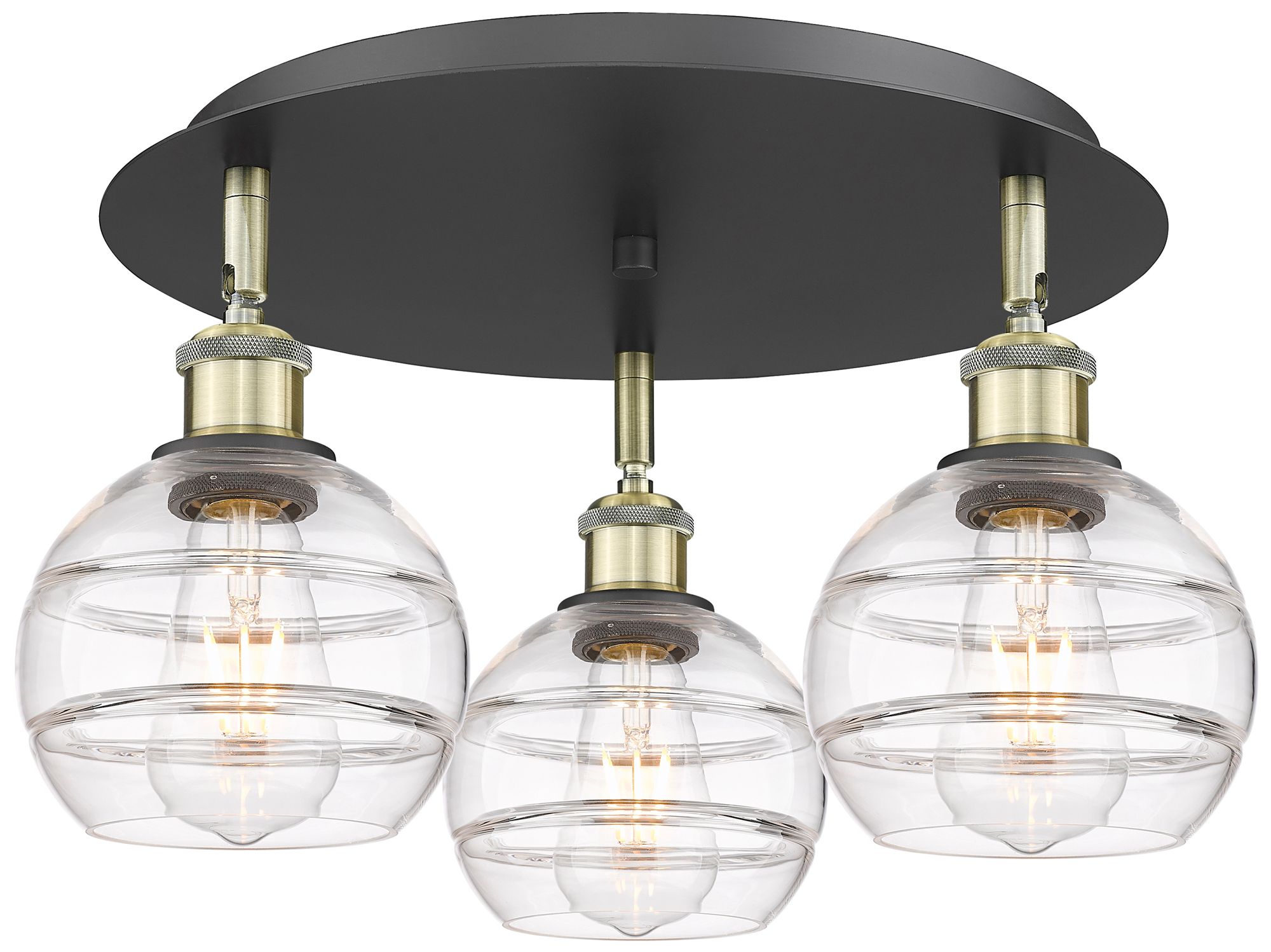 Ballston Rochester 17.63"W 3-Light Black Brass Flush Mount w/ Clear Sh