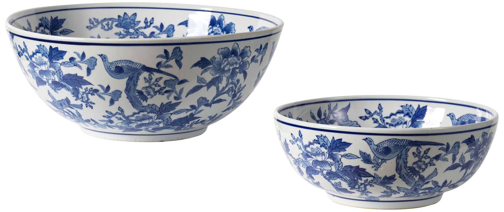 Decorative Blue & White Ceramic Bowls - Set of 2