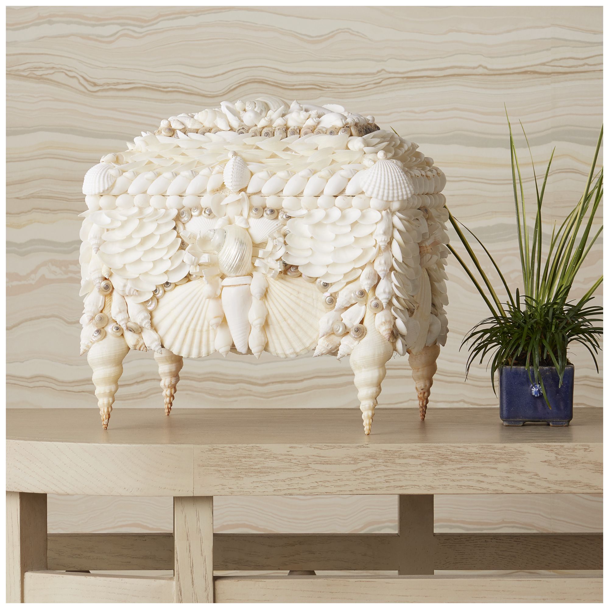 Currey & Company 10" Boardwalk White Shell Jewelry Box