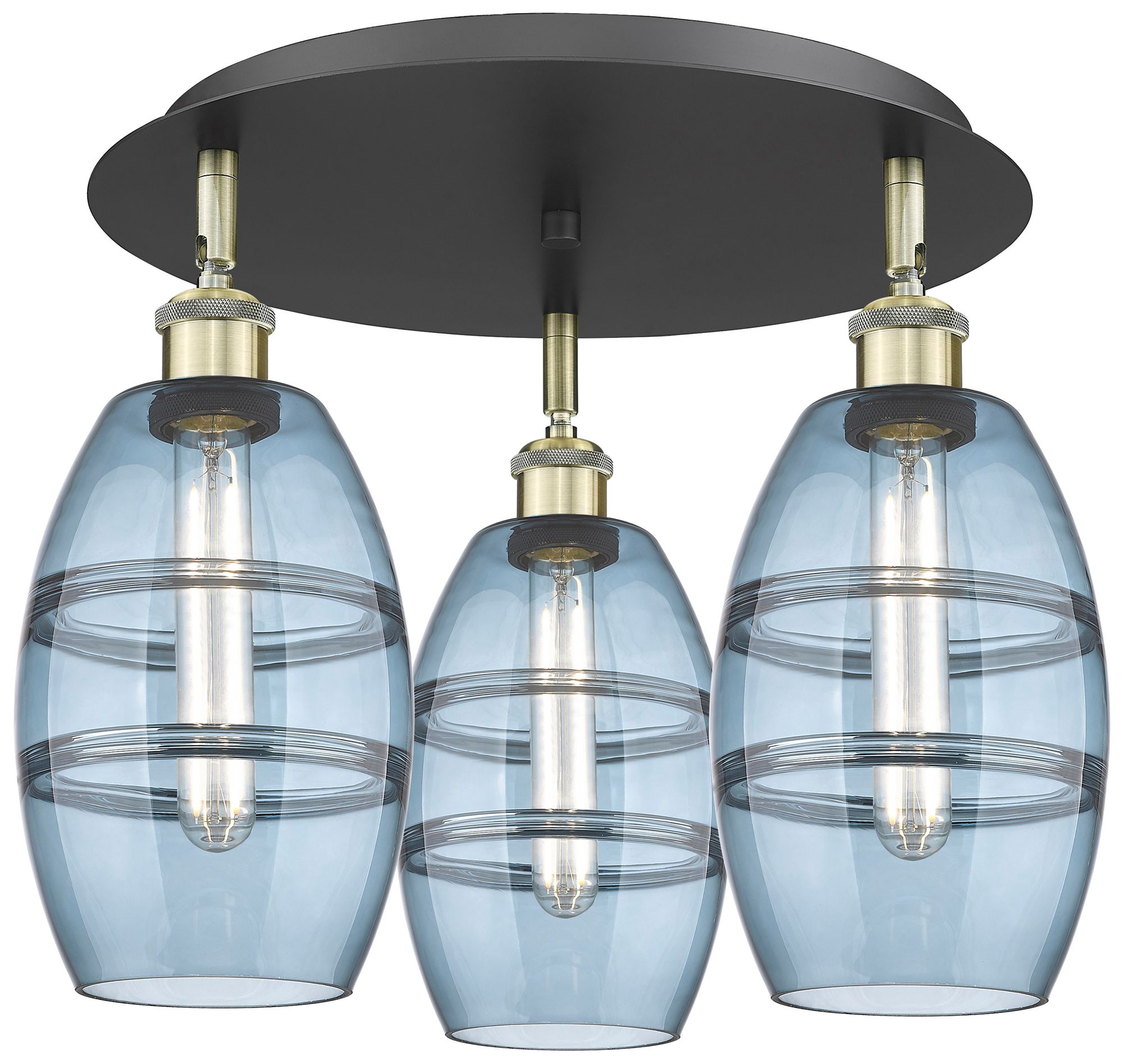 Ballston Vaz 17.63"W 3-Light Black Brass Flush Mount w/ Princess Blue