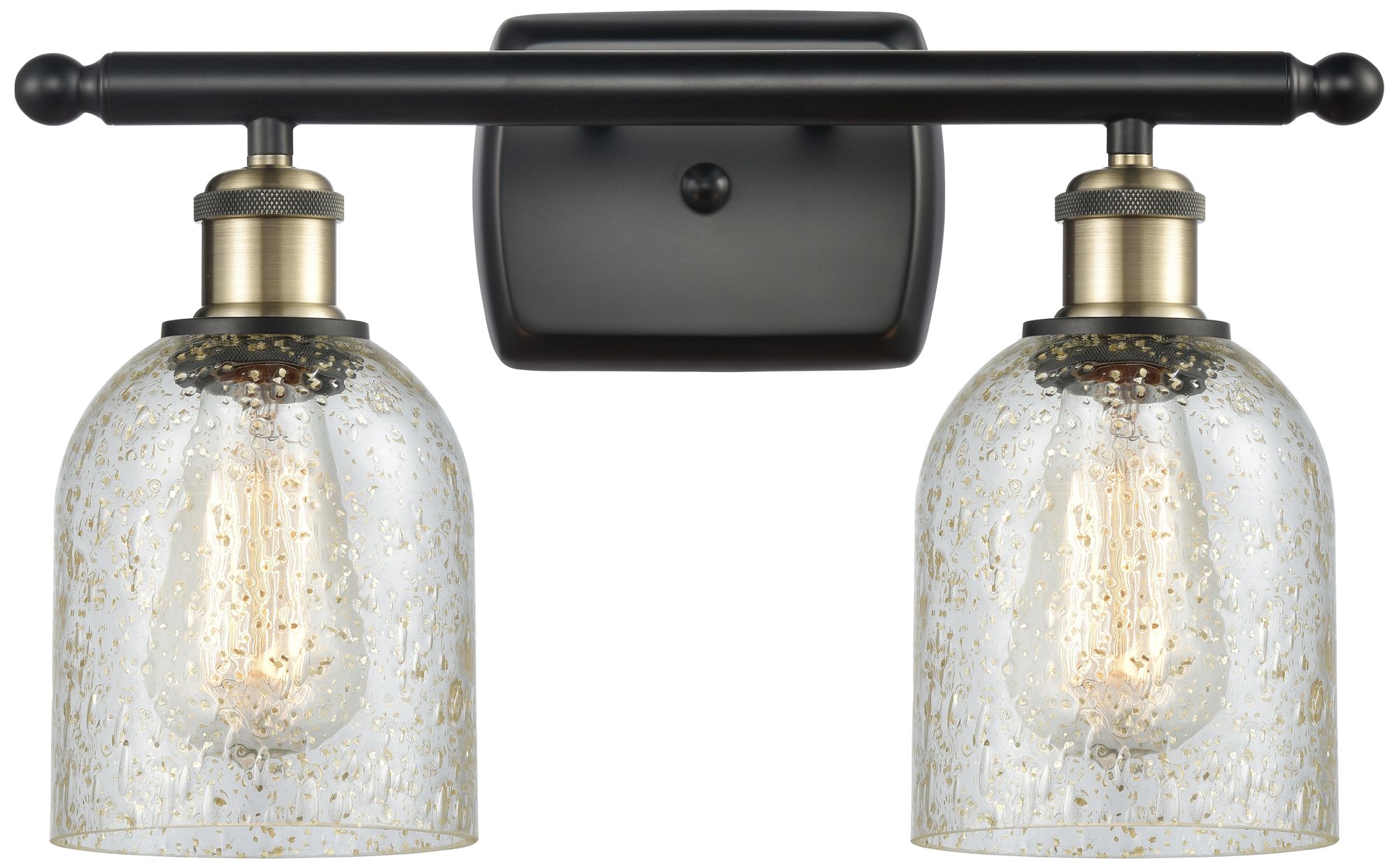 Caledonia 16" 2-Light Black Antique Brass Bath Light w/ Mica Shade