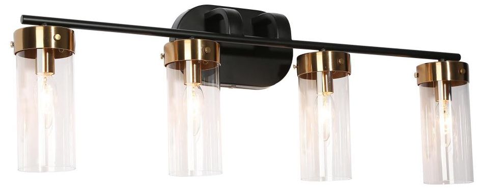 Jujueo 29"W Matte Black and Plating Brass 4-Light Bath Light