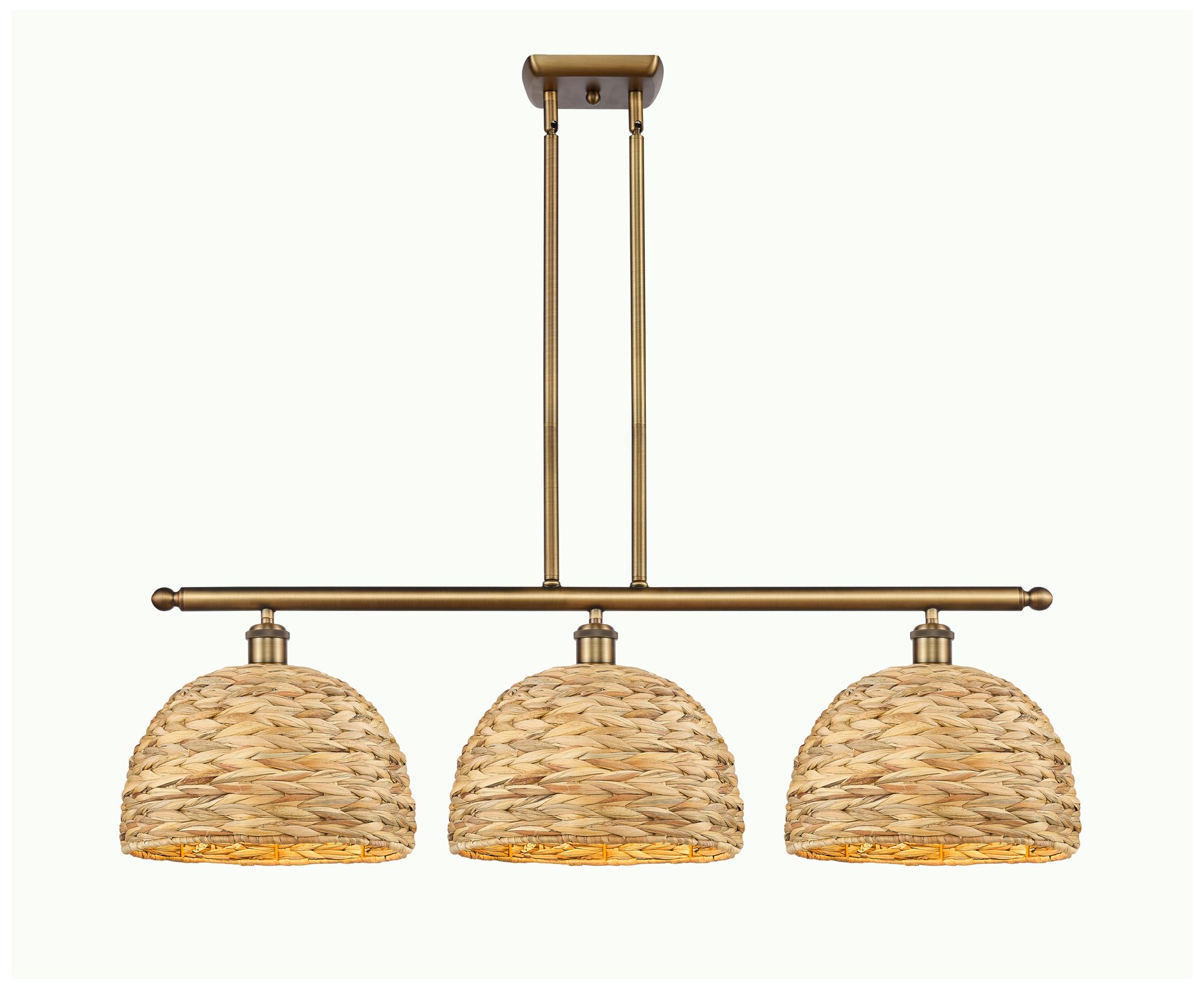 Woven Rattan 38"W 3 Light Brushed Brass Stem Pendant w/ Natural Shade