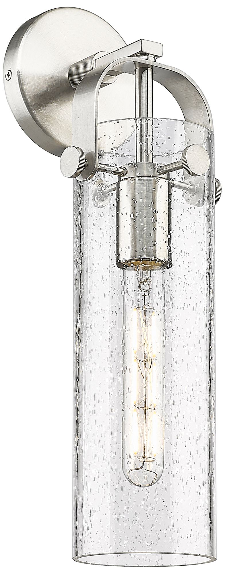 Pilaster 16.75" High Satin Nickel Sconce With Seedy Glass Shade