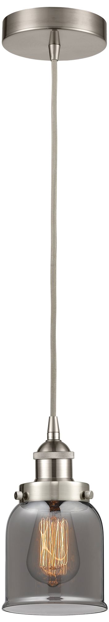 Bell 5" Brushed Satin Nickel Mini Pendant w/ Plated Smoke Shade