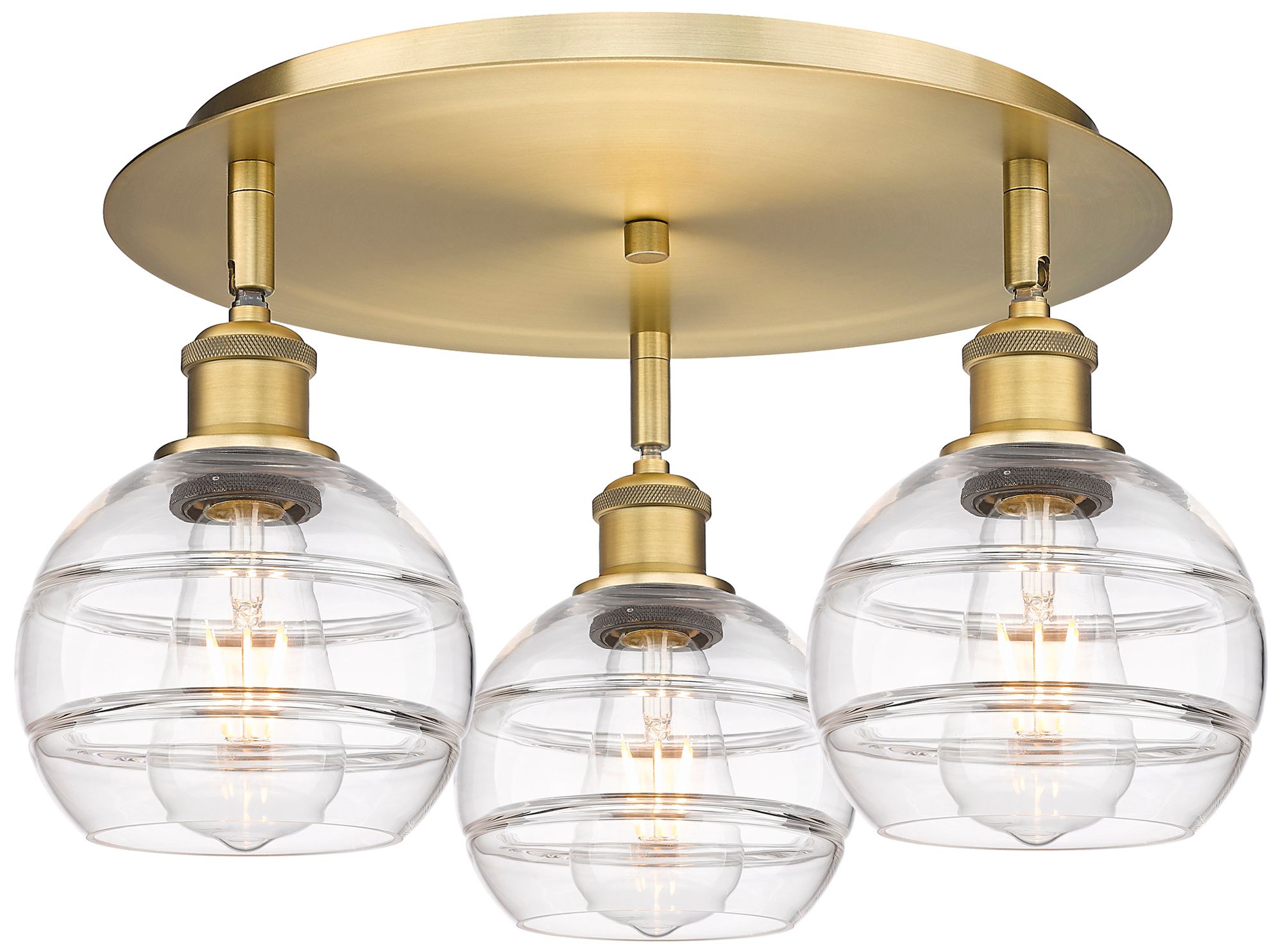 Ballston Rochester 17.63"W 3-Light Brushed Brass Flush Mount w/ Clear