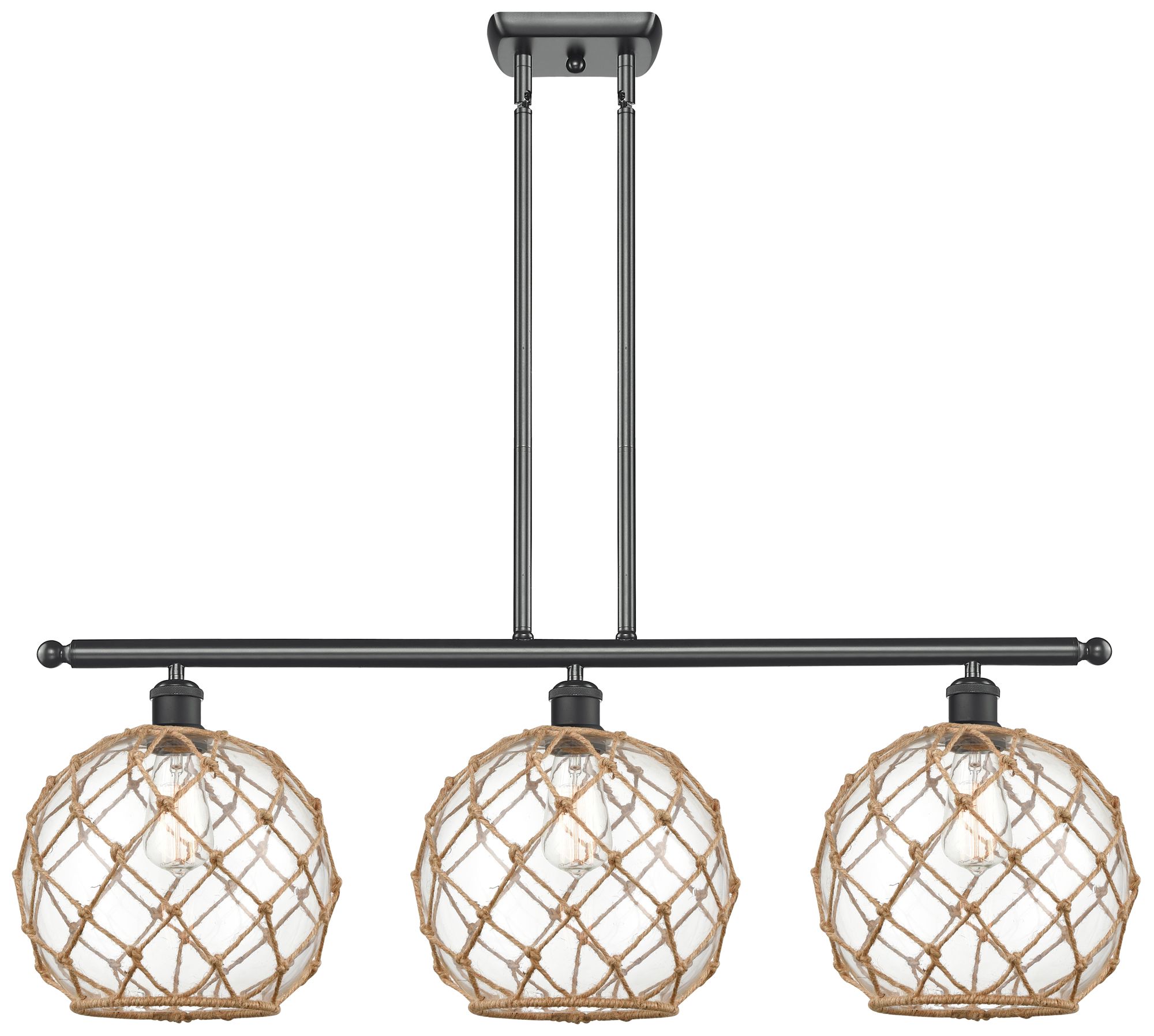 Large Farmhouse 36"W 3 Lt Matte Black Island Light w/ Clear and Brown