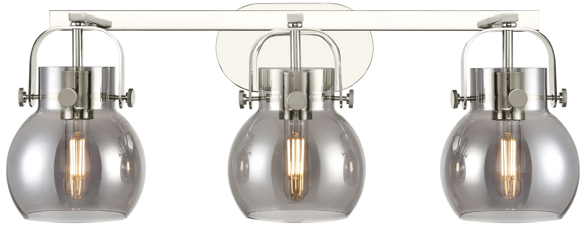 Pilaster II Sphere 26.5"W 3 Light Polished Nickel Bath Light w/ Smoke