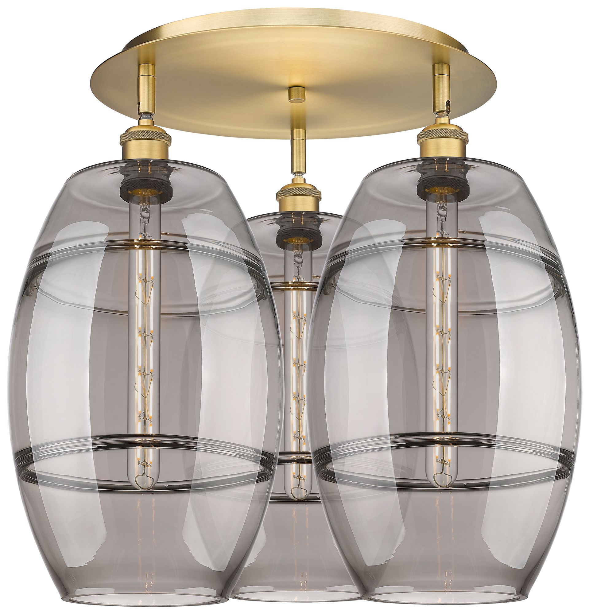 Ballston Vaz 21.75"W 3-Light Brushed Brass Flush Mount w/ Light Smoke