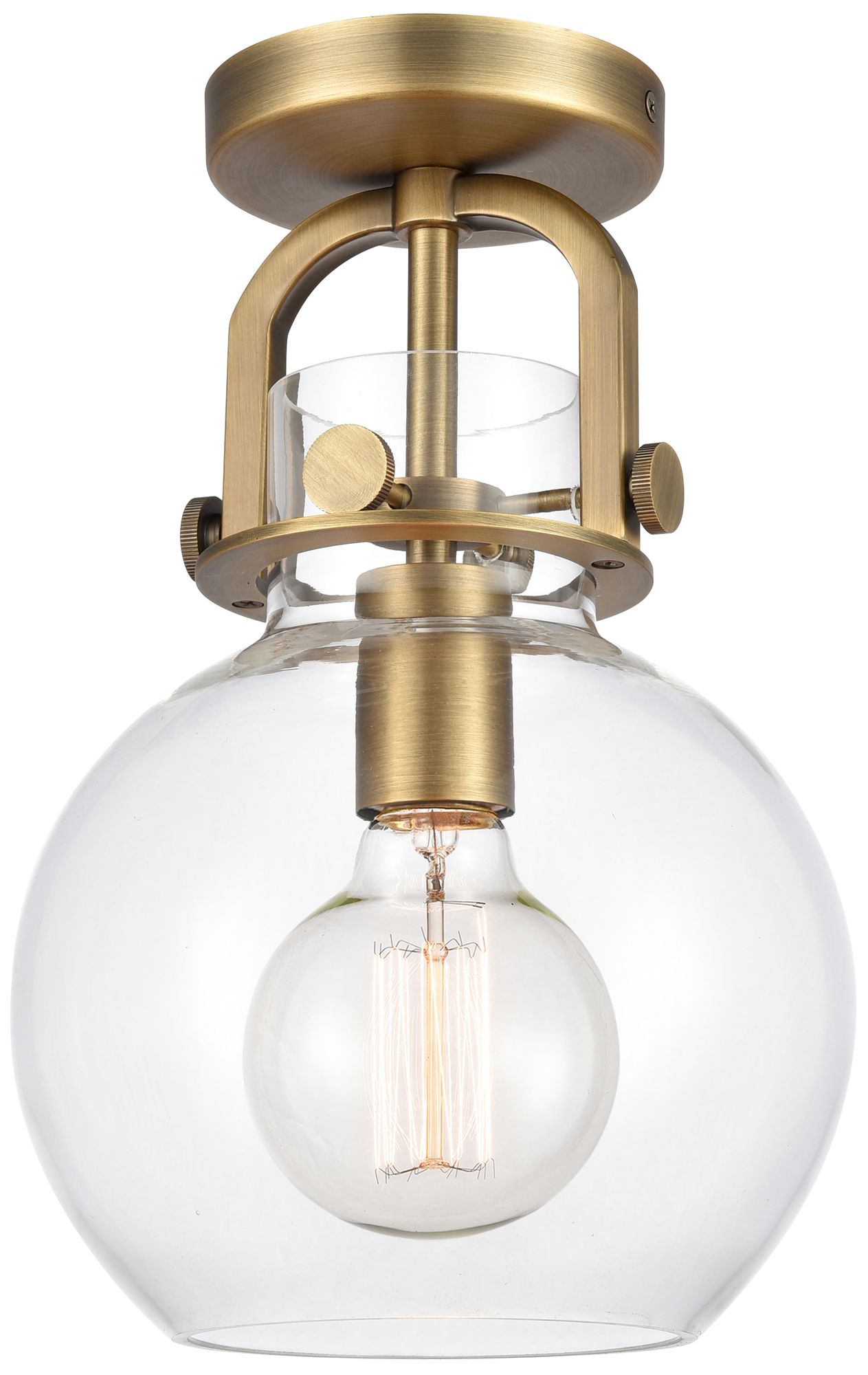 Newton Sphere 8" LED Flush Mount - Brushed Brass - Clear Shade