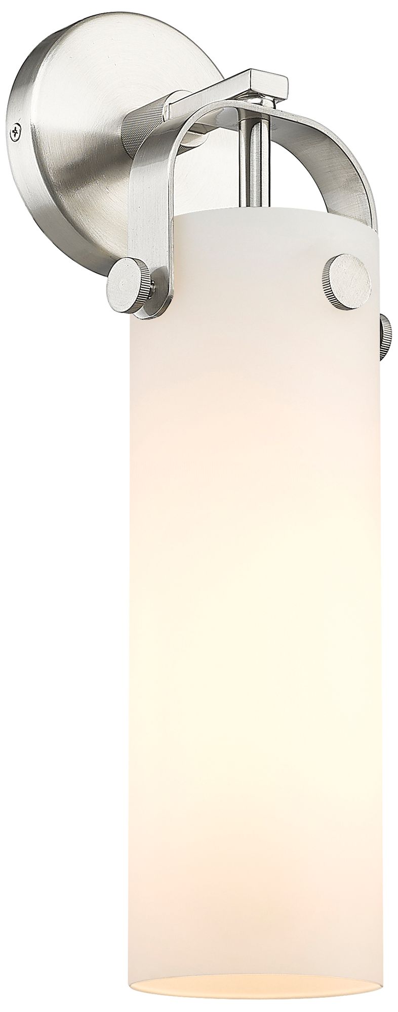 Pilaster 16.75" High Satin Nickel Sconce With Matte White Glass Shade