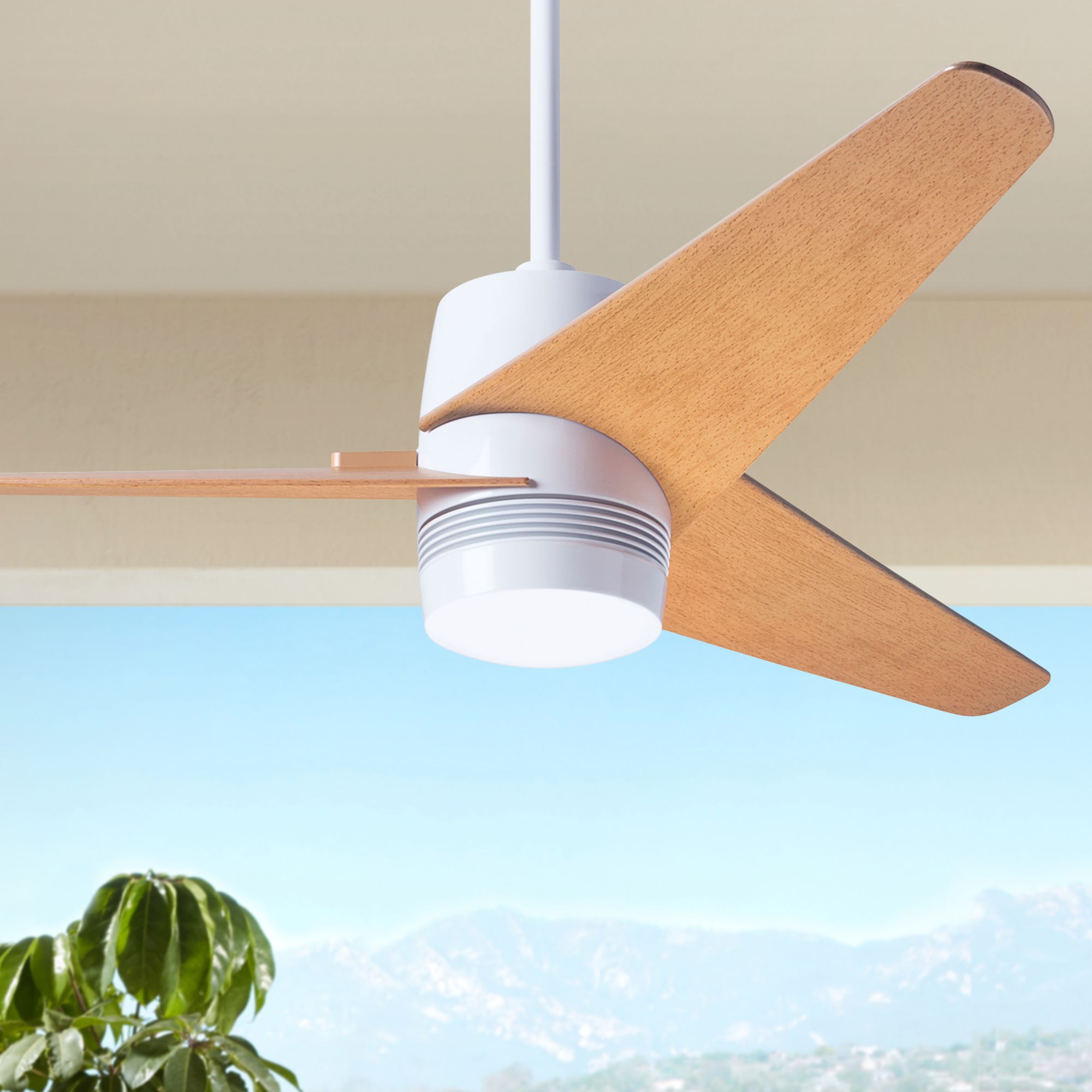 48" Modern Fan Velo DC Gloss White Maple Damp Rated Fan with Remote