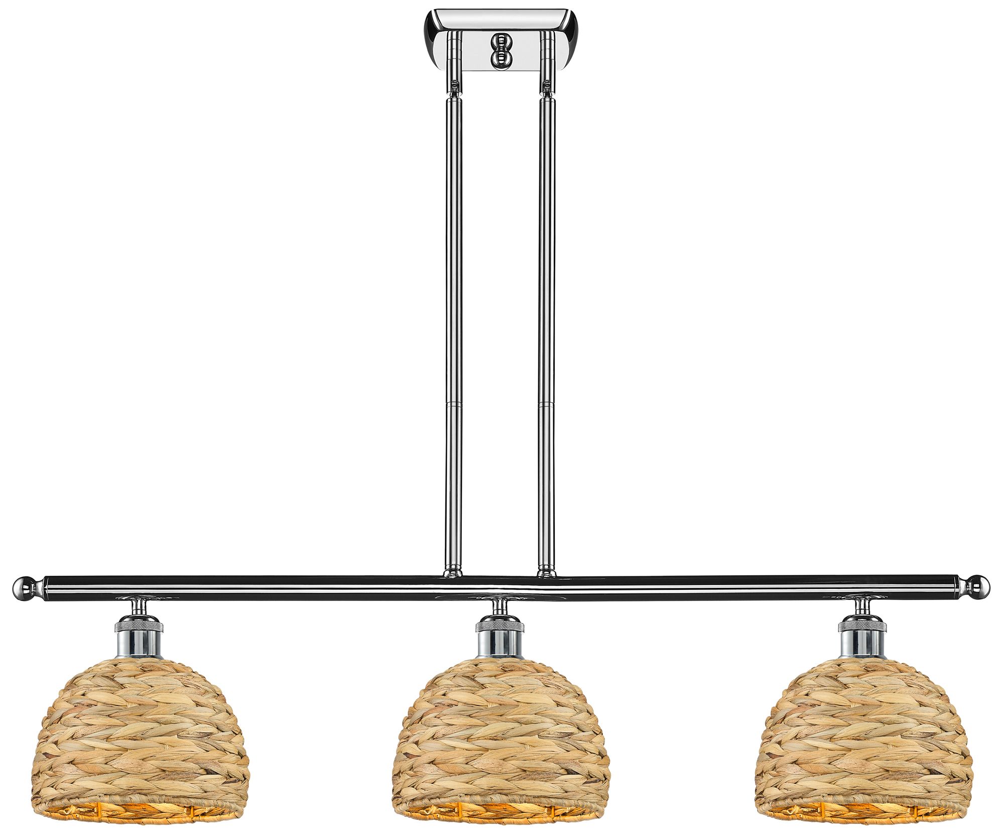 Woven Rattan 36"W 3 Light Chrome Stem Island Light w/ Natural Shade