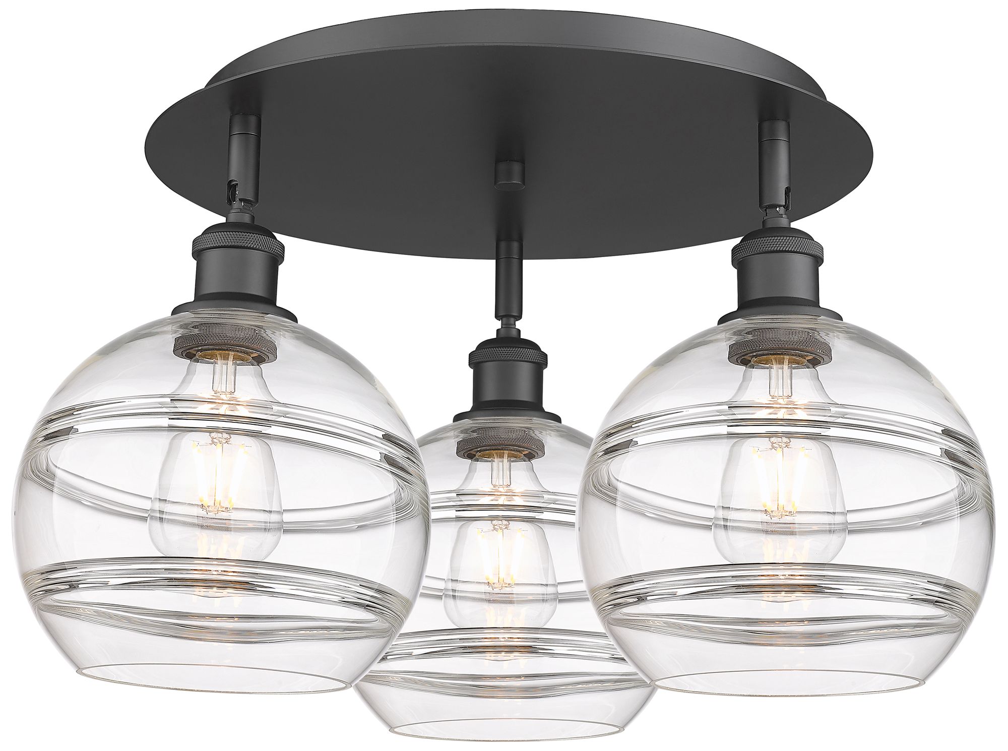 Ballston Rochester 19.75"W 3-Light Matte Black Flush Mount w/ Clear Sh