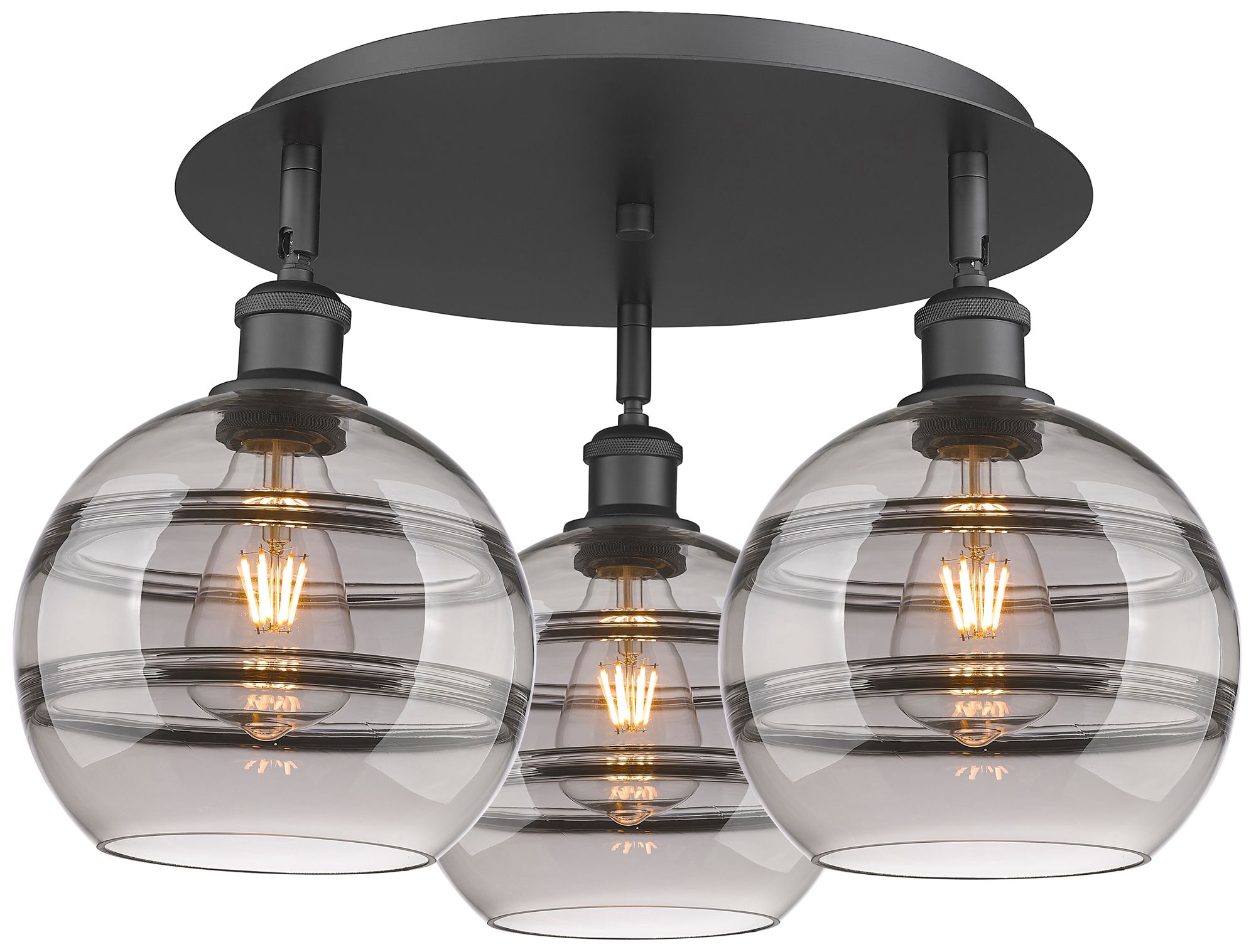 Ballston Rochester 19.75"W 3-Light Matte Black Flush Mount w/ Smoke Sh