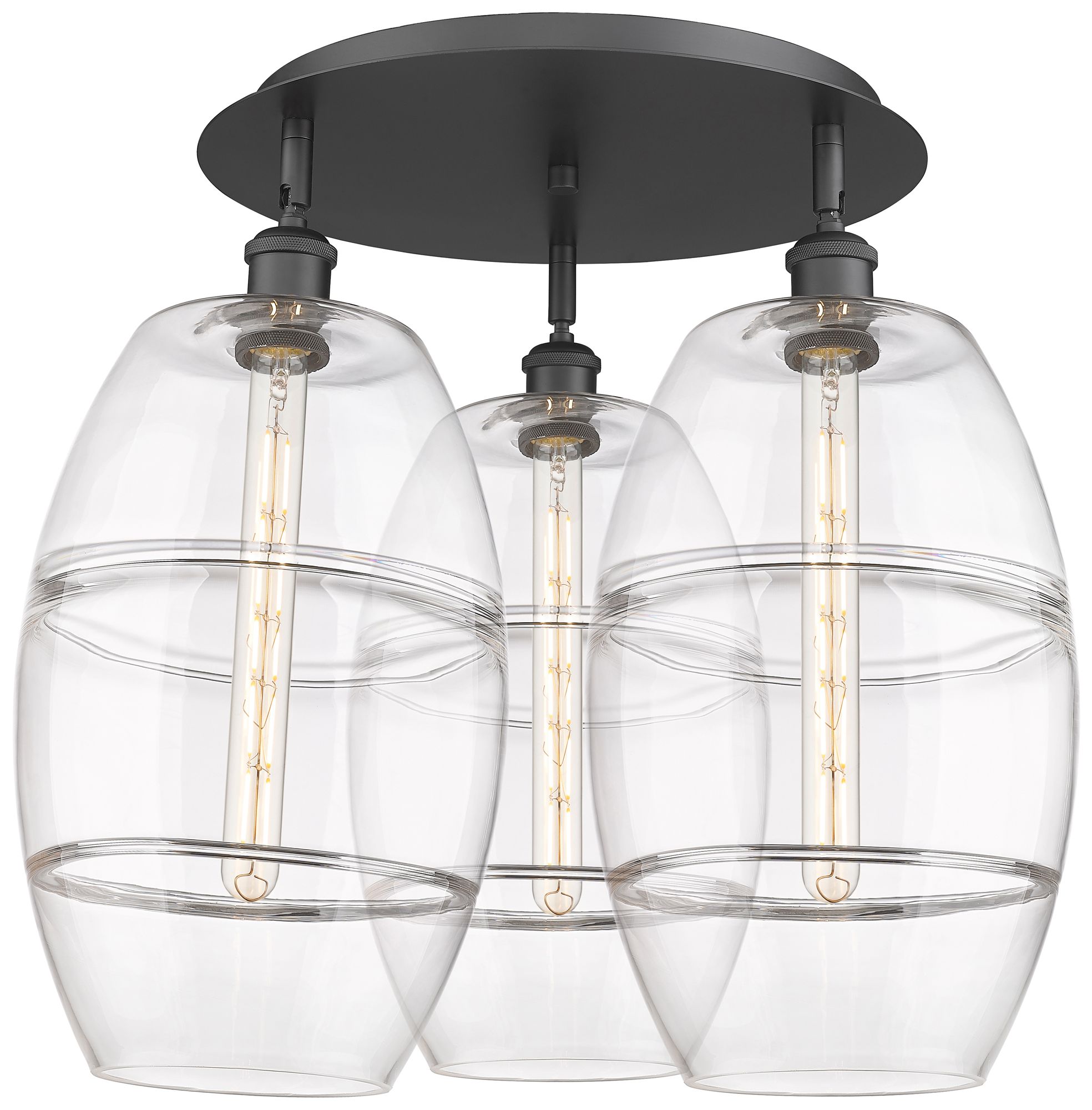 Ballston Vaz 21.75" Wide 3-Light Matte Black Flush Mount With Clear Sh