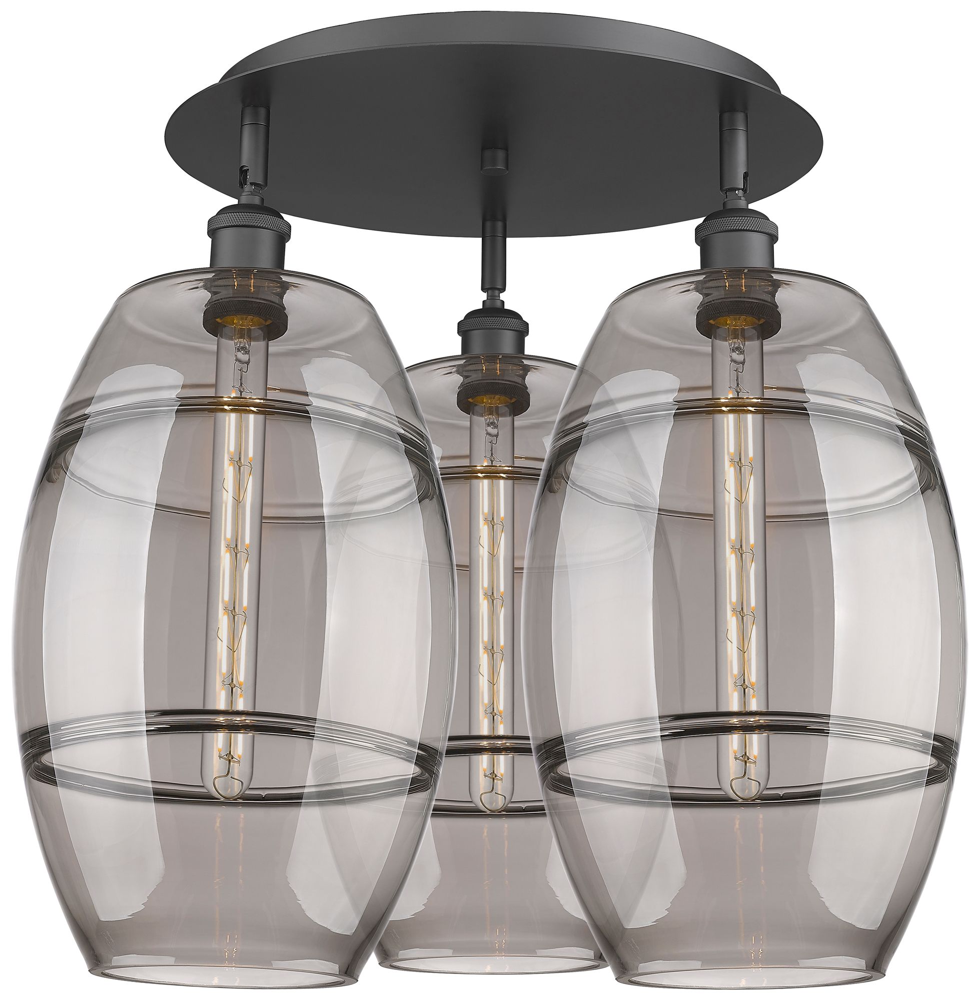 Ballston Vaz 21.75"W 3-Light Matte Black Flush Mount w/ Light Smoke Sh