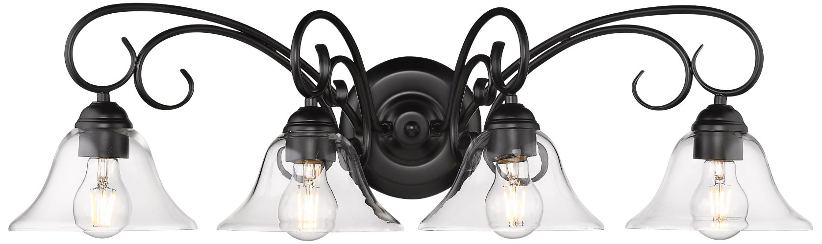 Homestead 32" Wide 4-Light Vanity Light in Matte Black with Clear Glas