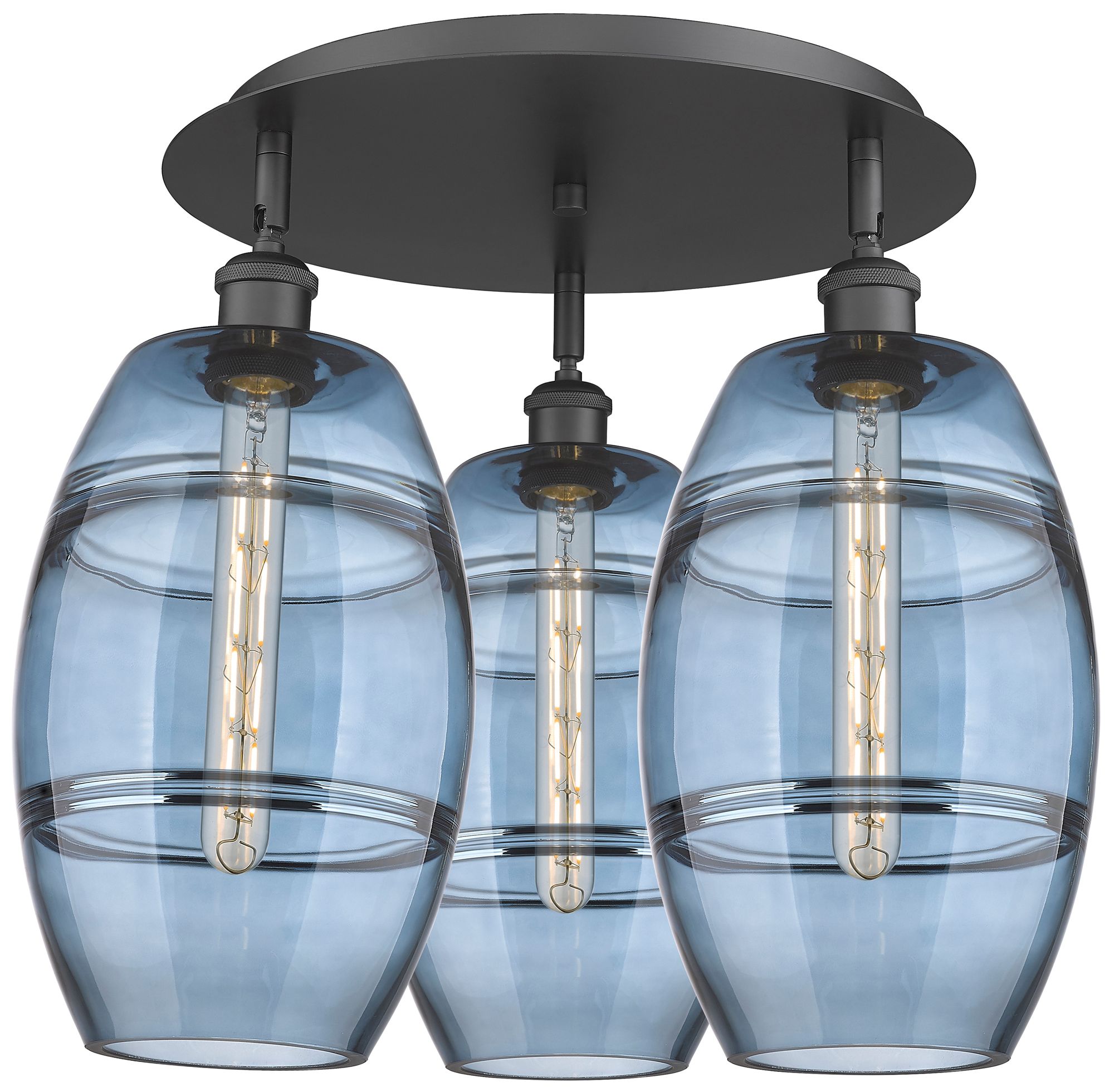 Ballston Vaz 19.75"W 3-Light Matte Black Flush Mount w/ Princess Blue