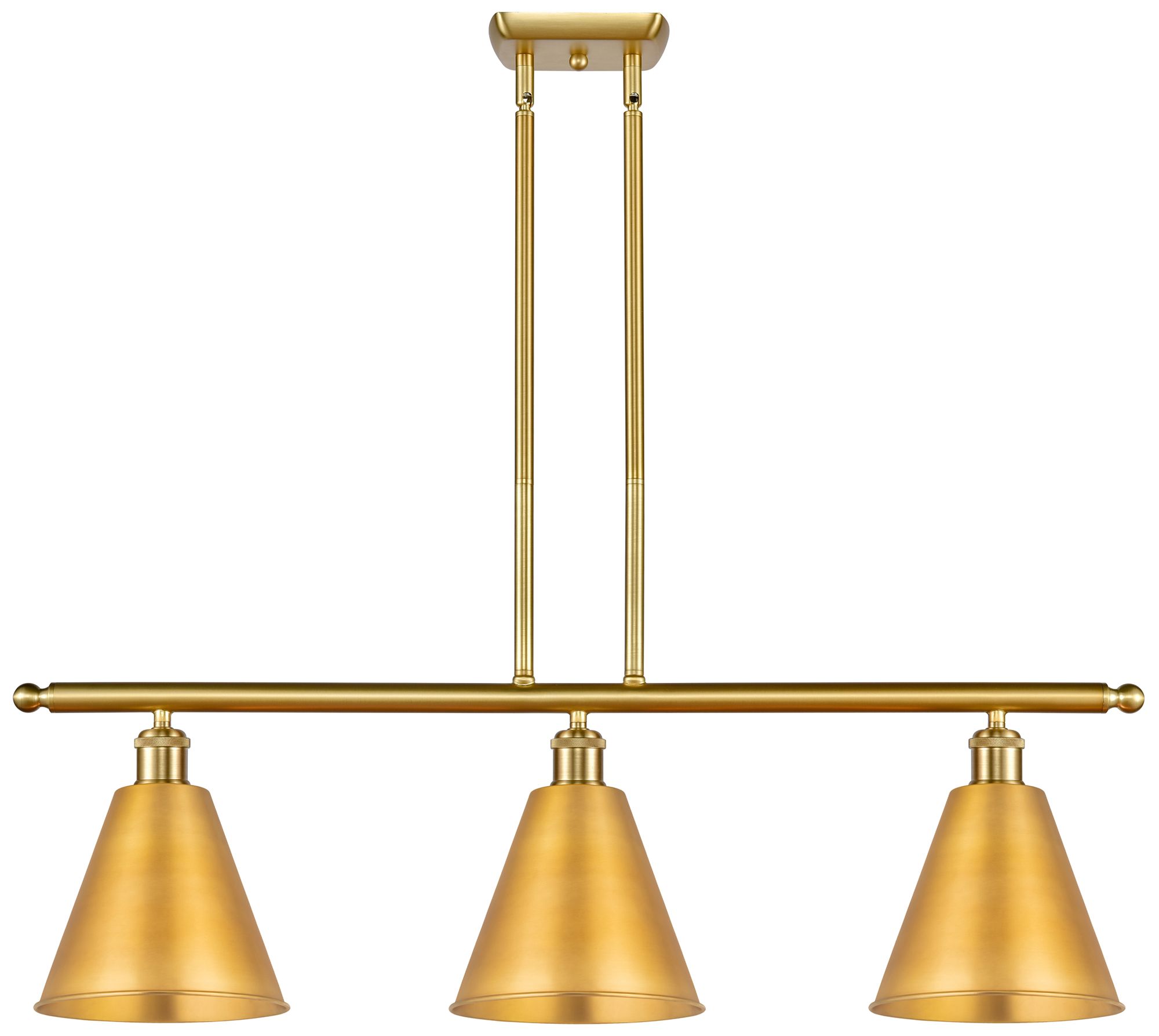 Ballston Cone 36"W 3 Light Satin Gold Stem LED Island Light
