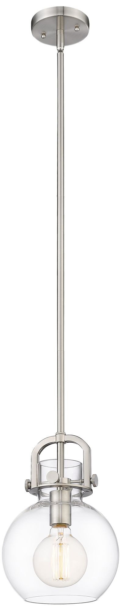 Newton Sphere 8" LED Mini Pendant - Brushed Satin Nickel - Clear