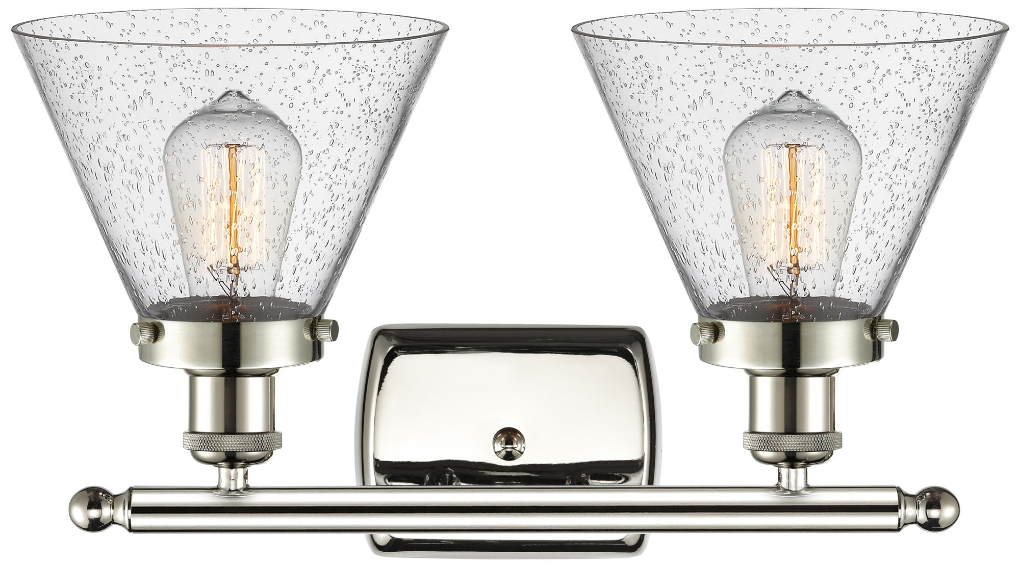 Ballston Urban Cone 18" 2 Light Nickel Bath Light w/ Seedy Shade
