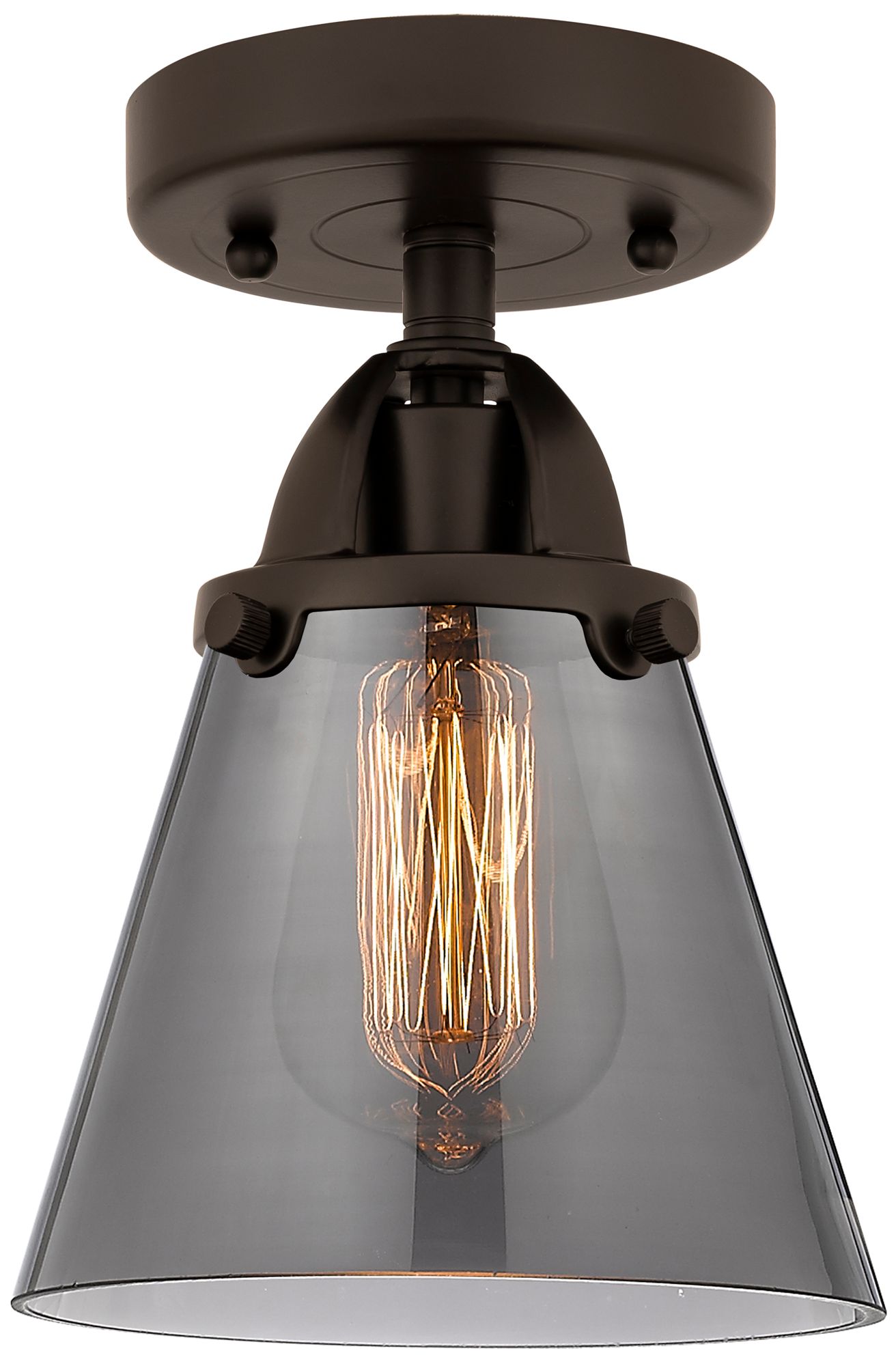 Nouveau 2 Cone 6" Semi-Flush Mount - Oil Rubbed Bronze - Plated Smoke