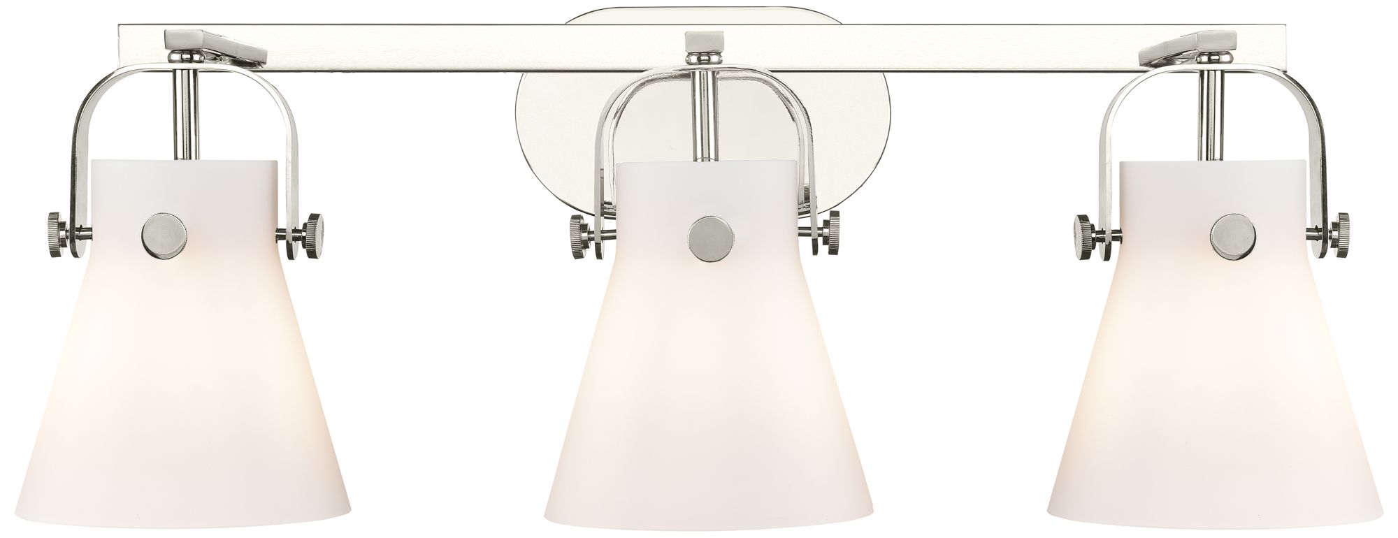 Pilaster II Cone 26.5"W 3 Light Polished Nickel Bath Light w/ White Sh