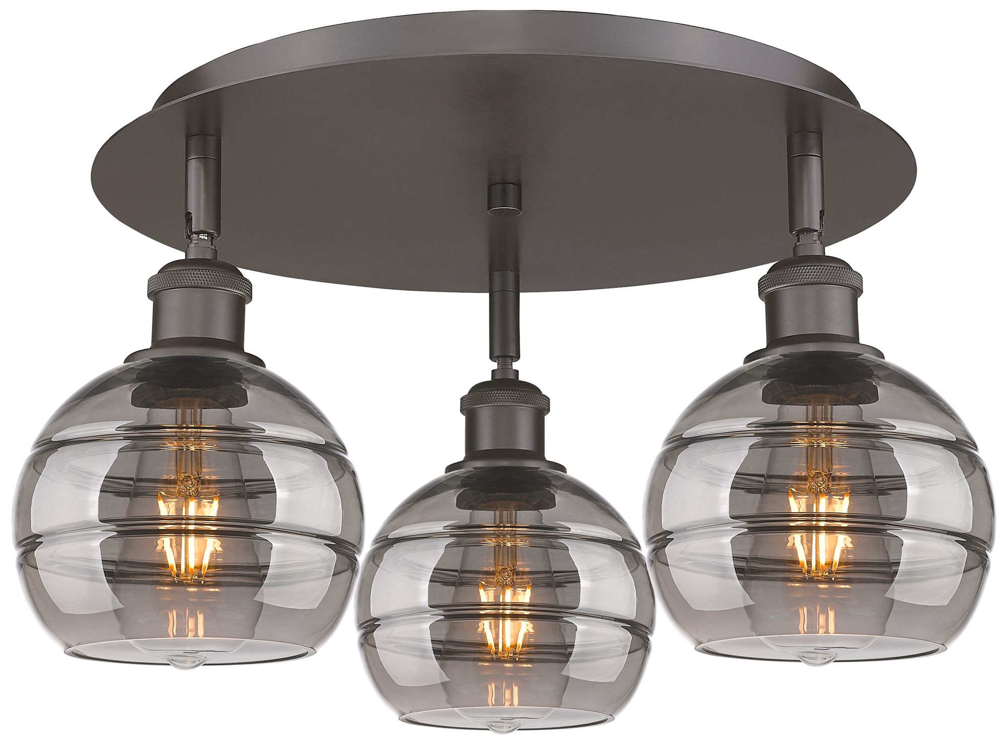 Ballston Rochester 17.63"W 3-Light Oiled Bronze Flush Mount w/ Smoke S