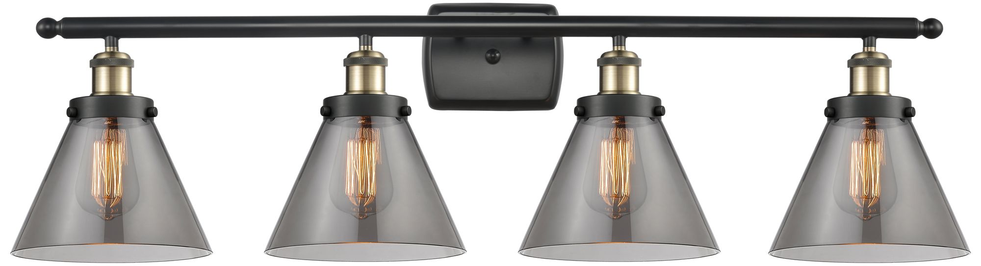 Ballston Urban Cone 38" 4 Light Black Brass Bath Light w/ Smoke Shade