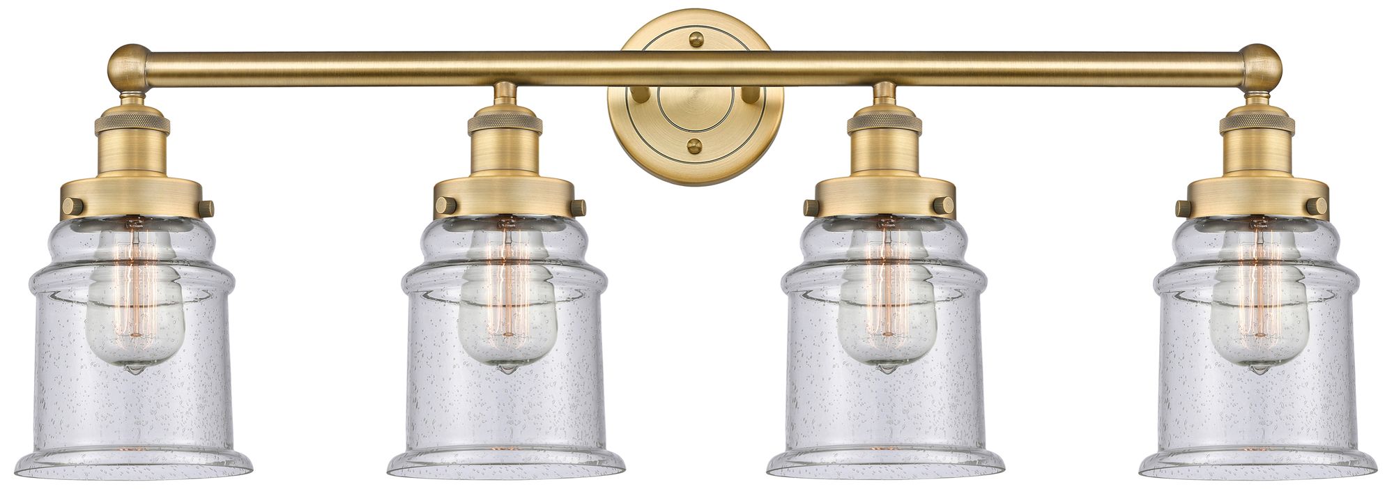 Canton 33" Wide 4 Light Brushed Brass Bath Vanity Light With Seedy Sha