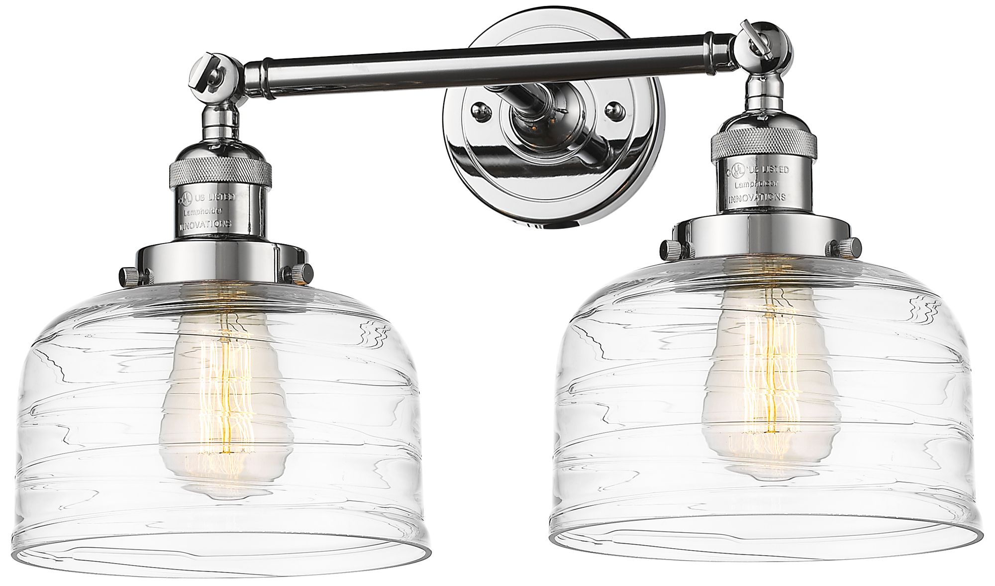 Bell 2 Light 19" LED Bath Light - Polished Chrome - Clear Deco Swirl S