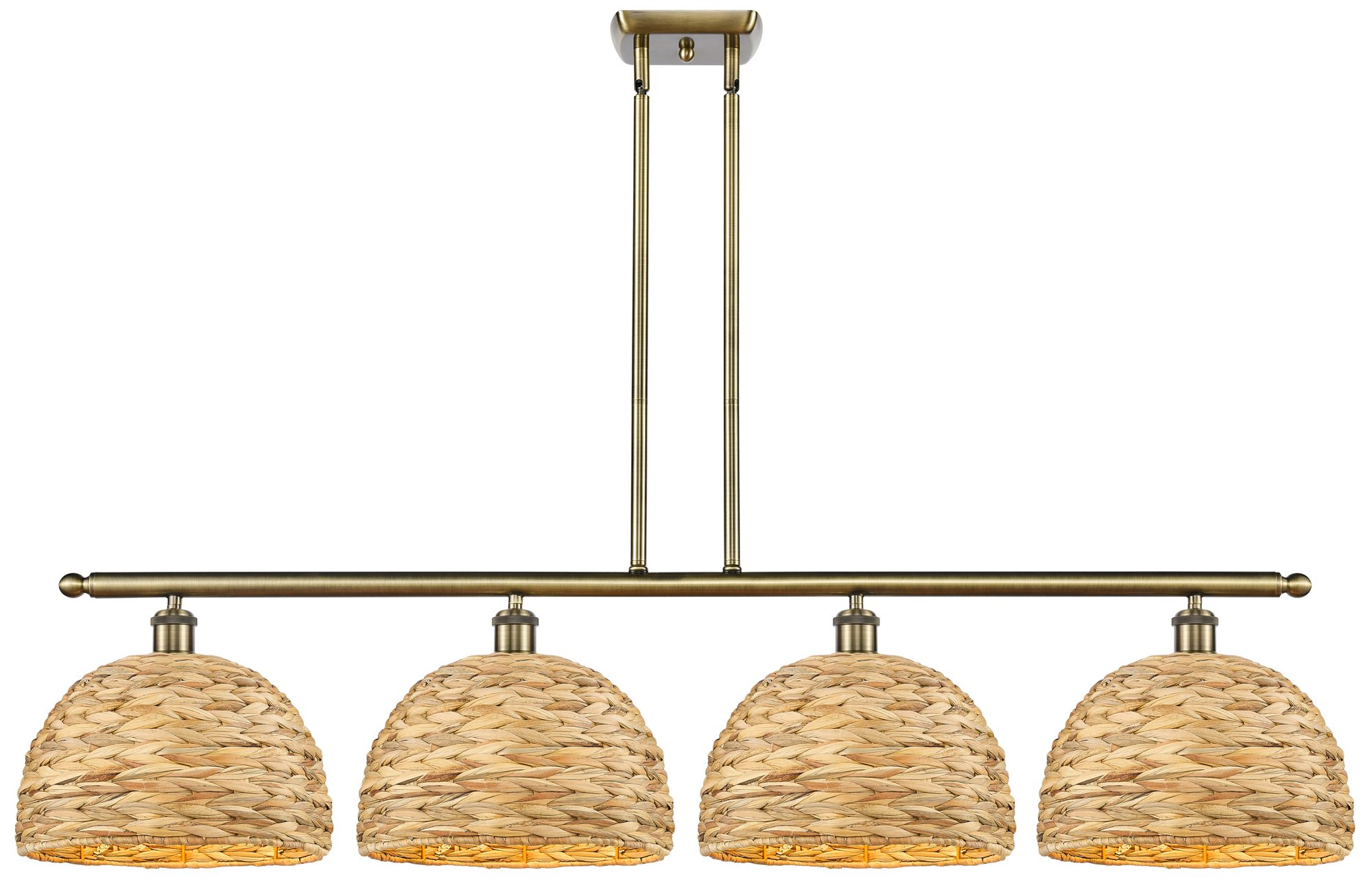 Woven Rattan 50"W 4 Light Antique Brass Stem Island Light w/ Natural S