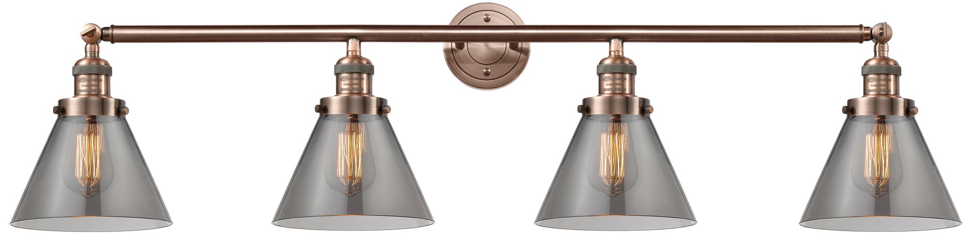 Cone 4 Light 44" Bath Light - Antique Copper - Plated Smoke Shade