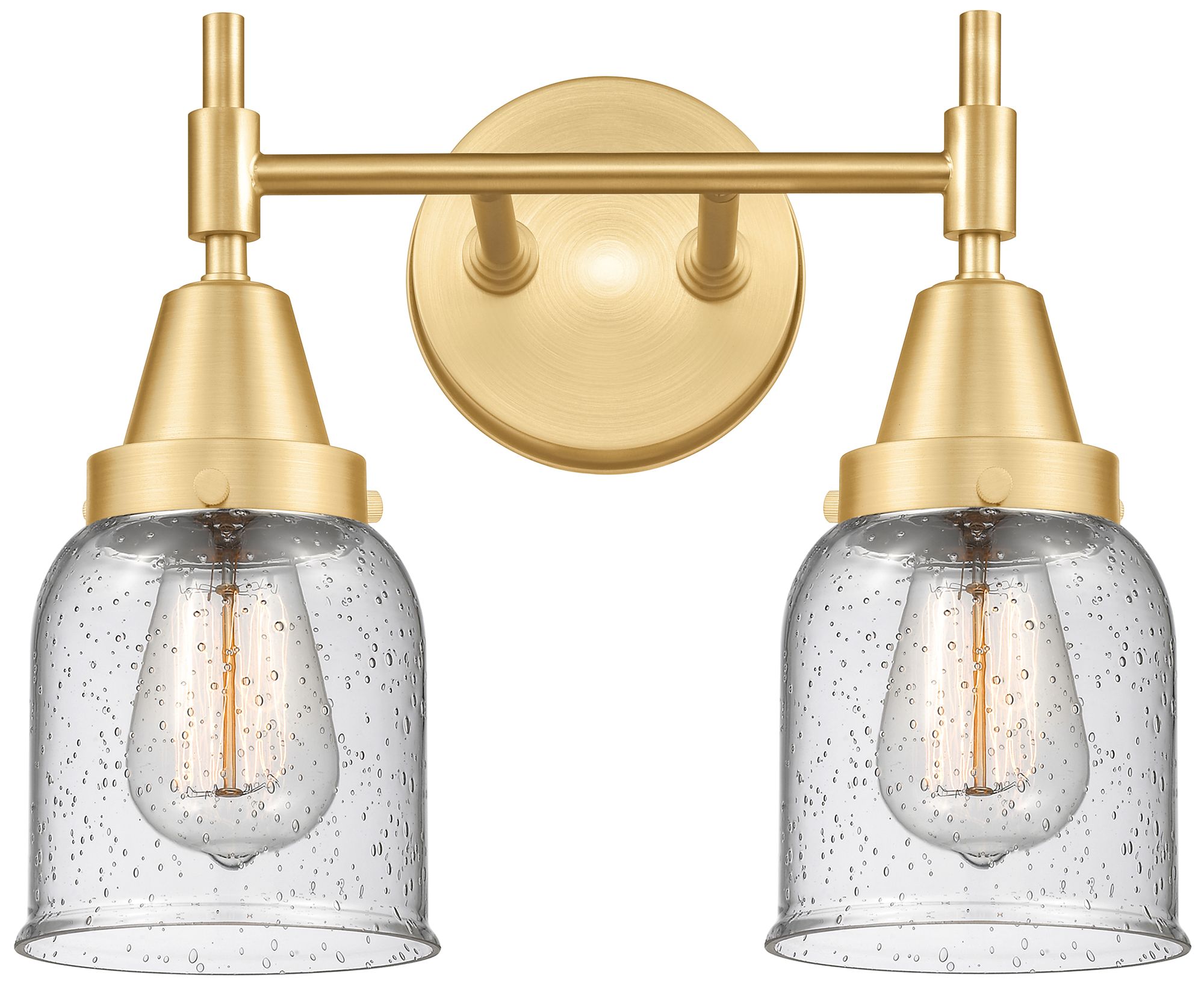 Caden 14" Wide 2 Light Satin Gold Bath Vanity Light w/ Seedy Shade