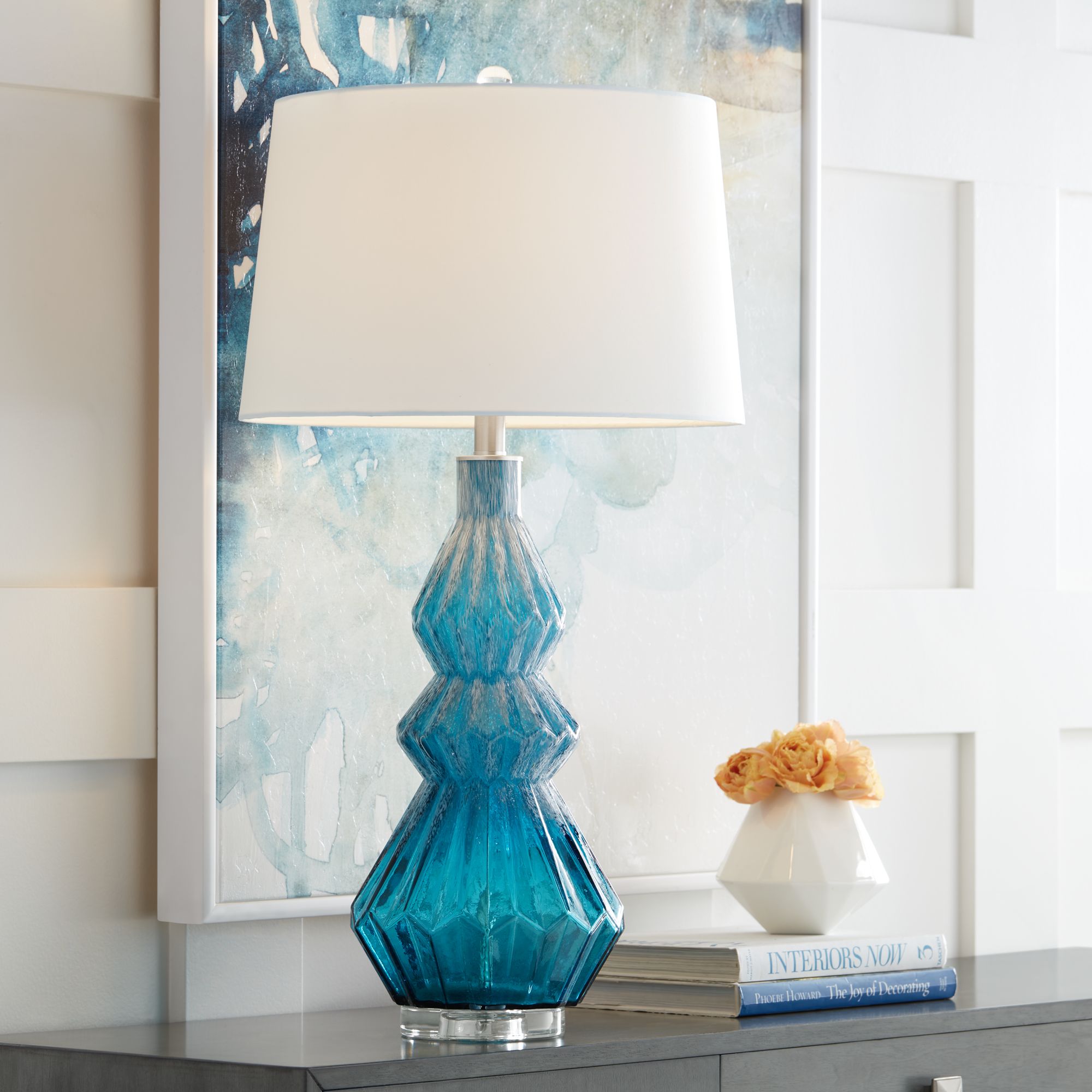 Possini Euro Darren 30 3/4" Modern Blue Art Glass Table Lamp