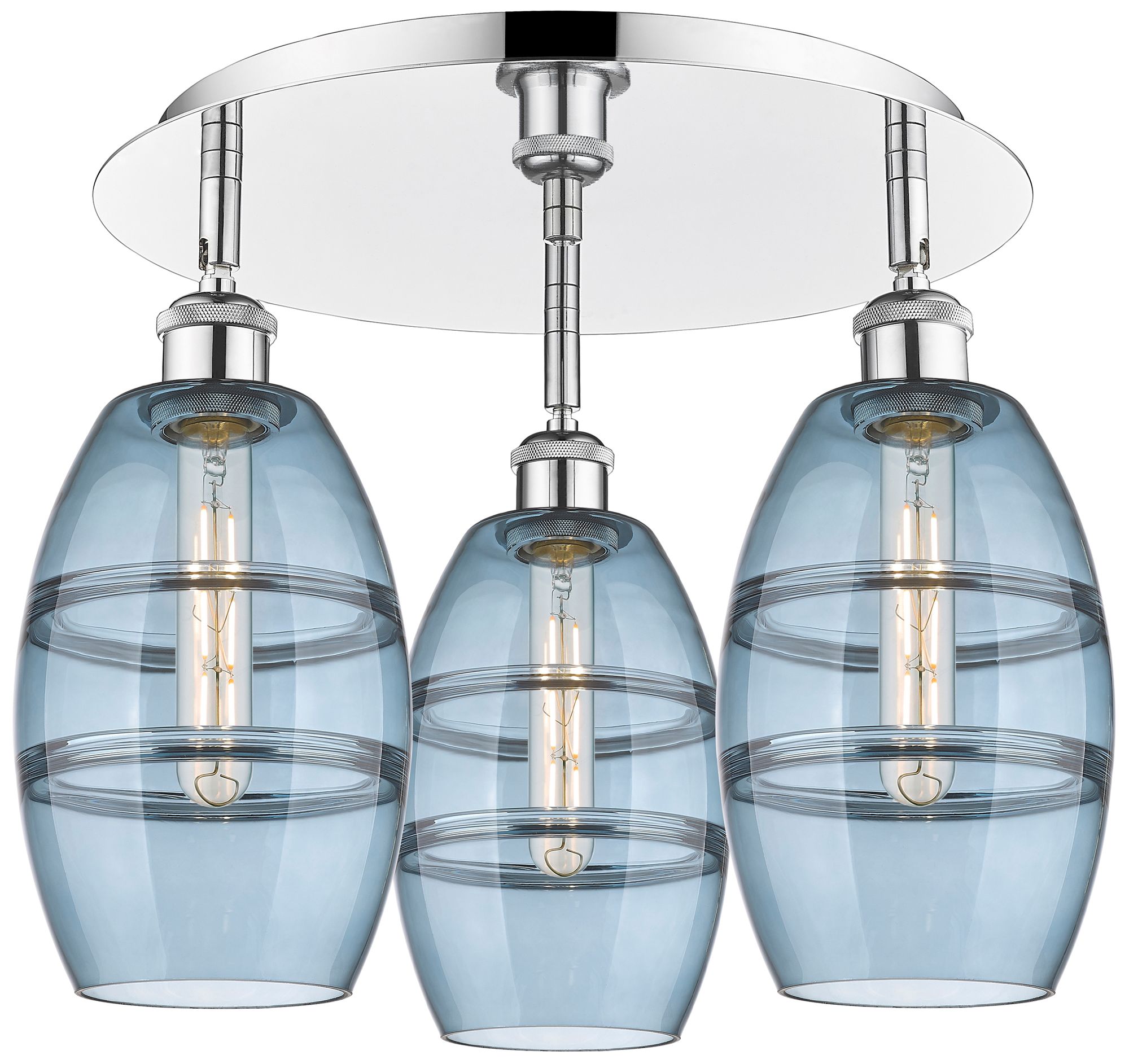 Ballston Vaz 17.63"W 3-Light Polished Chrome Flush Mount w/ Blue Shade