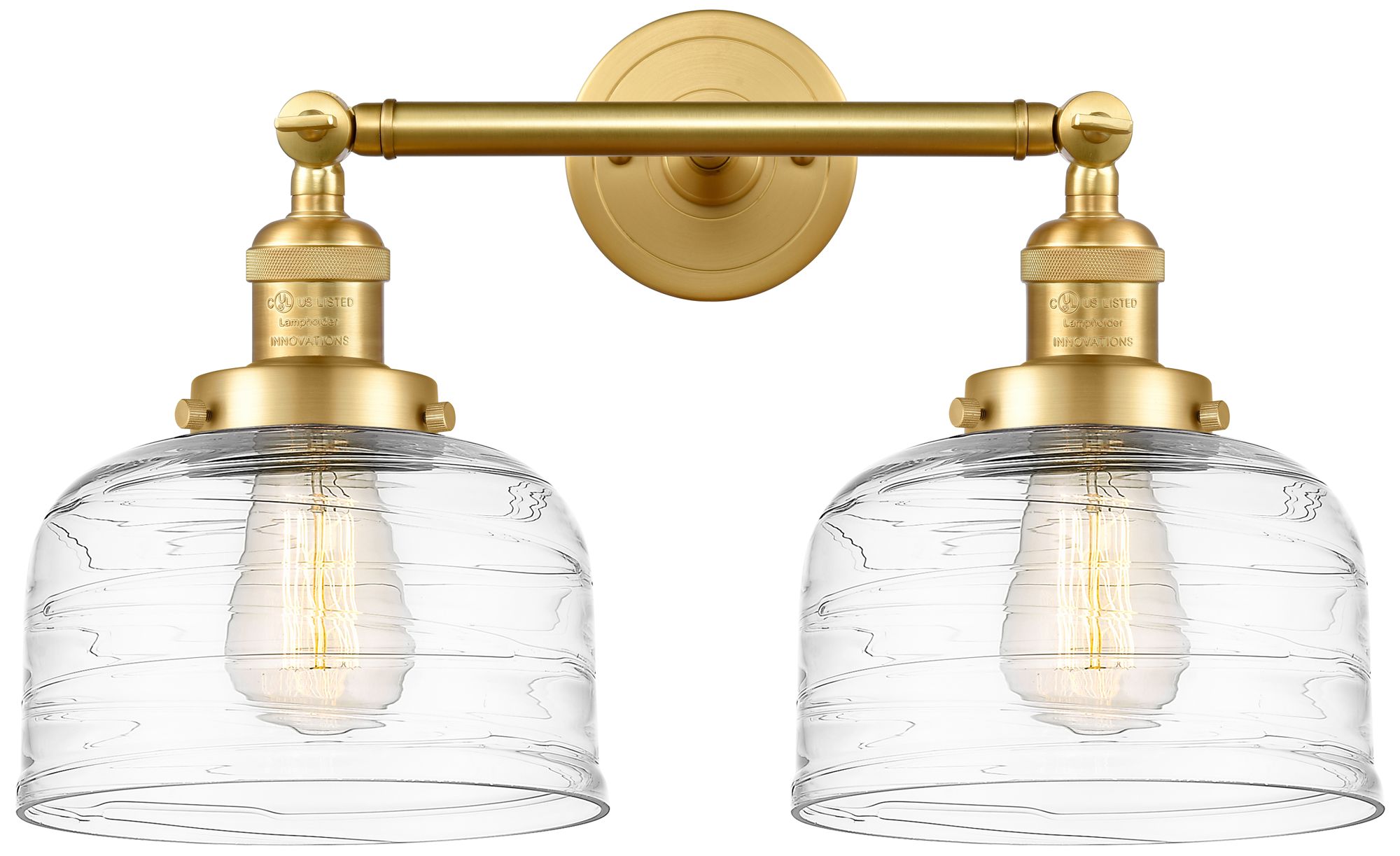Bell 2 Light 19" LED Bath Light - Satin Gold - Clear Deco Swirl Shade